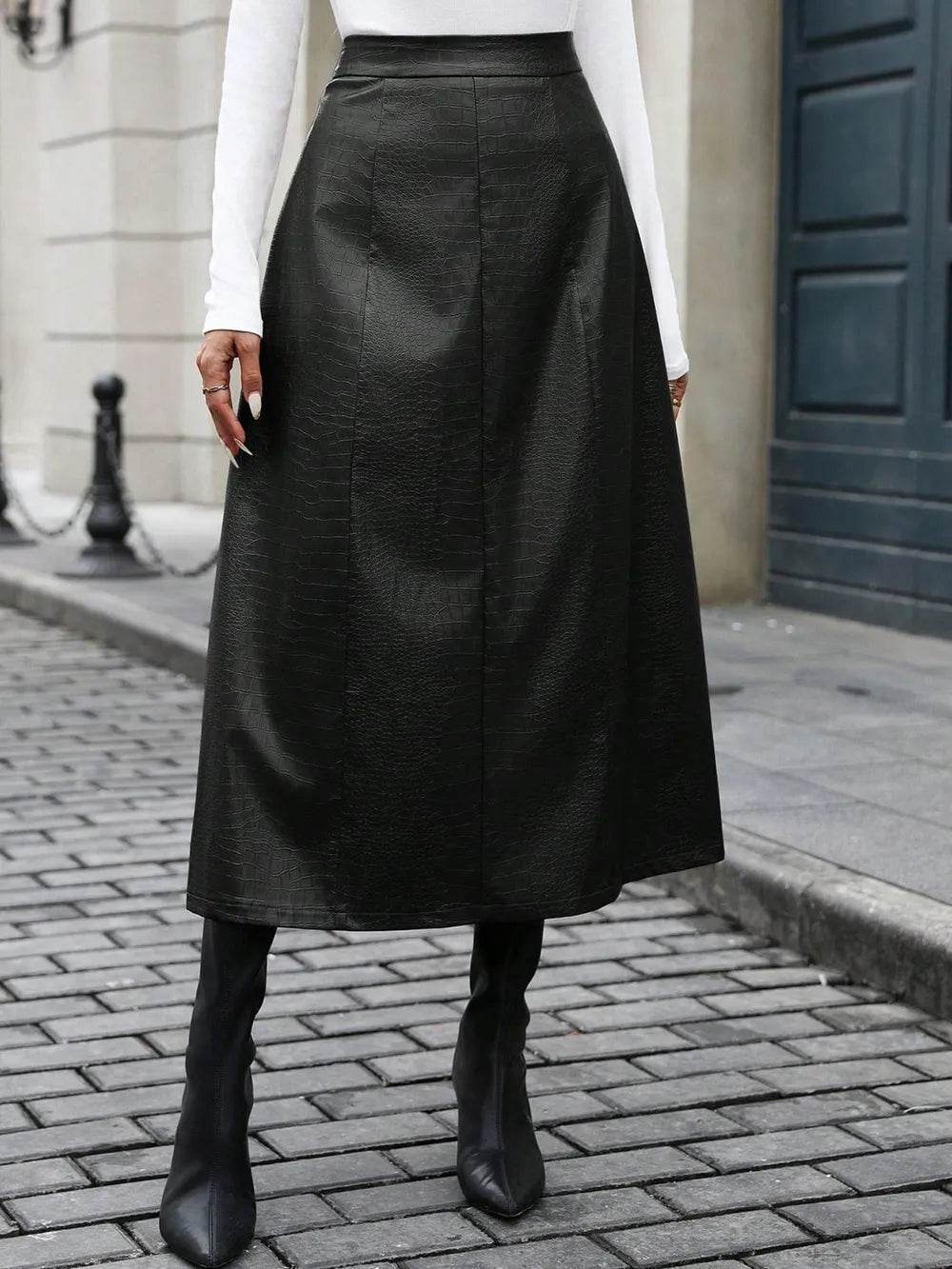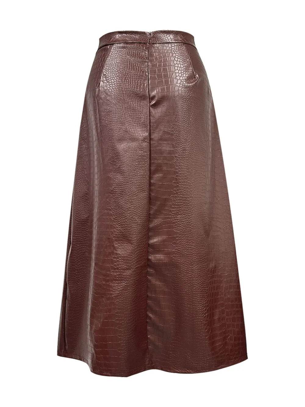 Sleek and sophisticated, these front pleated faux leather wide leg pants are a bold statement piece for the modern wardrobe. Crafted from high-quality faux leather with a smooth finish