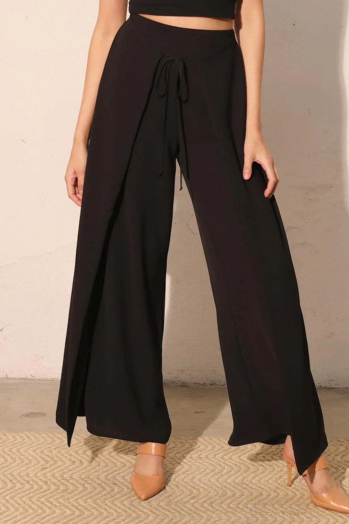 Front Pleated Faux Leather Wide Leg Pants