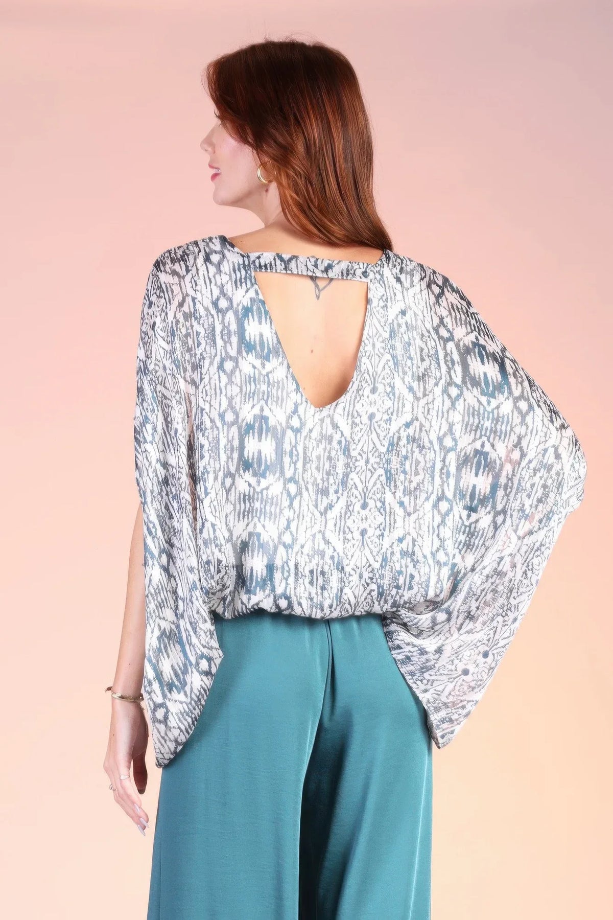 Express your unique style with this face print long sleeve button down blouse