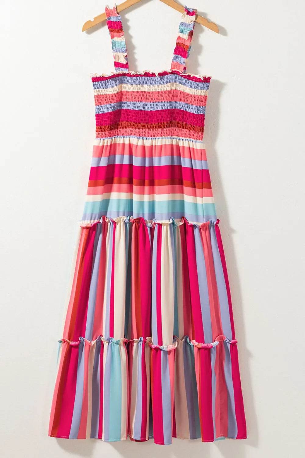 Design: Features a halter neckline, ruffled detailing, a smocked waist, and a stylish front slit.