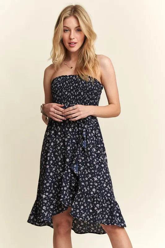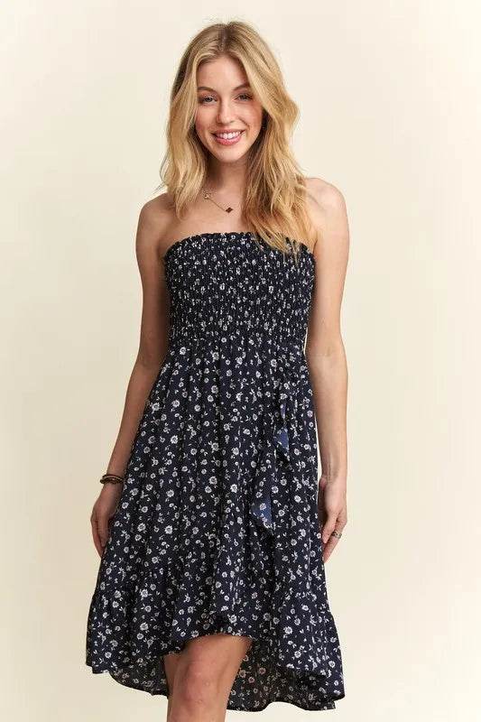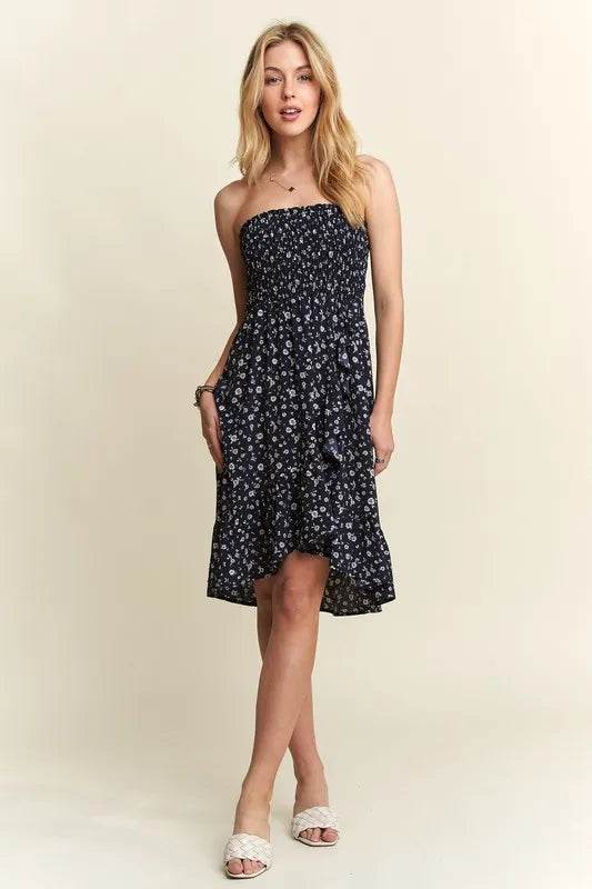 The Smocked Floral Tube Dress with Pockets is a fashionable and practical choice for both casual and dressier occasions. The smocked bodice provides a flattering and comfortable fit, while the tube top design adds a touch of sophistication. The floral pattern lends a feminine and stylish vibe to the dress, making it perfect for spring and summer outings. The addition of pockets adds functionality and convenience to the dress, allowing you to carry small essentials without needing a purse. Whether you're heading to a brunch date or a beach outing, this dress is a versatile and trendy option that combines fashion and functionality.