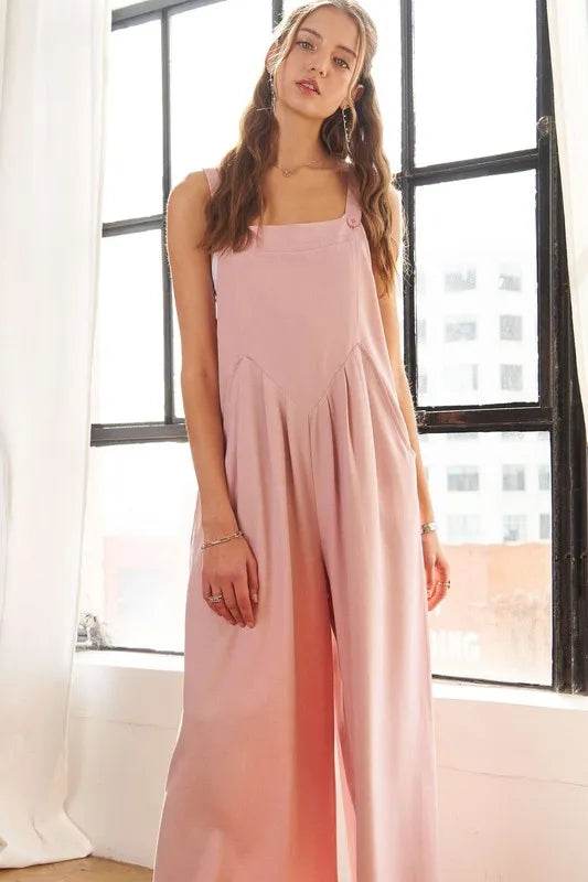 The Wide Leg Overall Romper is a trendy and versatile piece for your wardrobe. The wide-leg silhouette offers a relaxed and chic look. The overall style gives a playful and youthful vibe to the romper. Perfect for a casual day out or a weekend getaway, this romper can be dressed up or down with ease. Pair it with a simple tee or crop top for a stylish and effortless outfit!