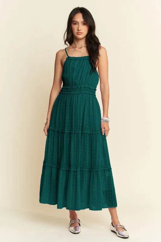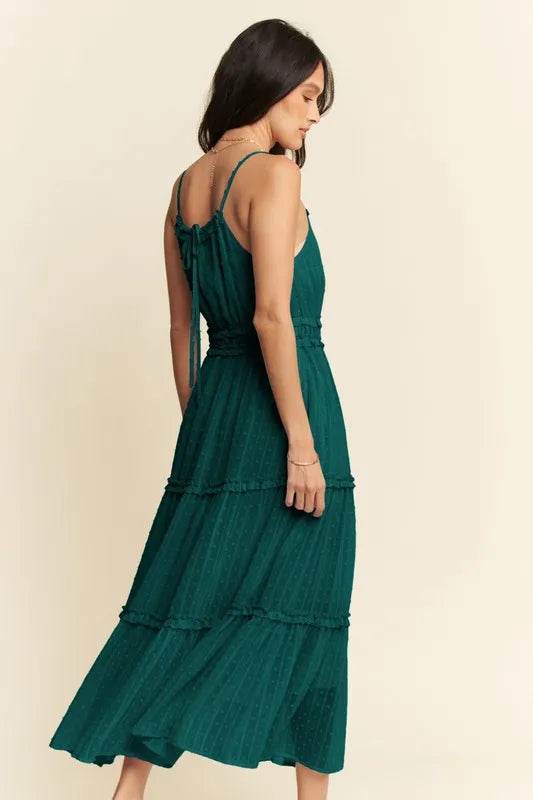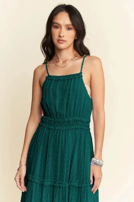 Davi & Dani Texture Swiss Dot Ruffle Square Neck Midi Dress - Ebony's Shopping