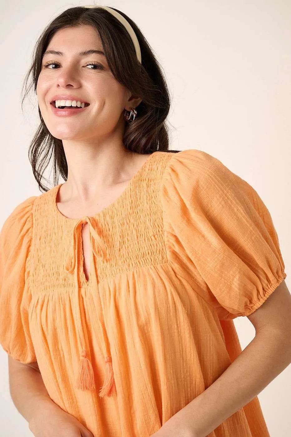 Mittoshop Tassel Tie Plaid Gauze Short Sleeve Mini Dress - Ebony's Shopping