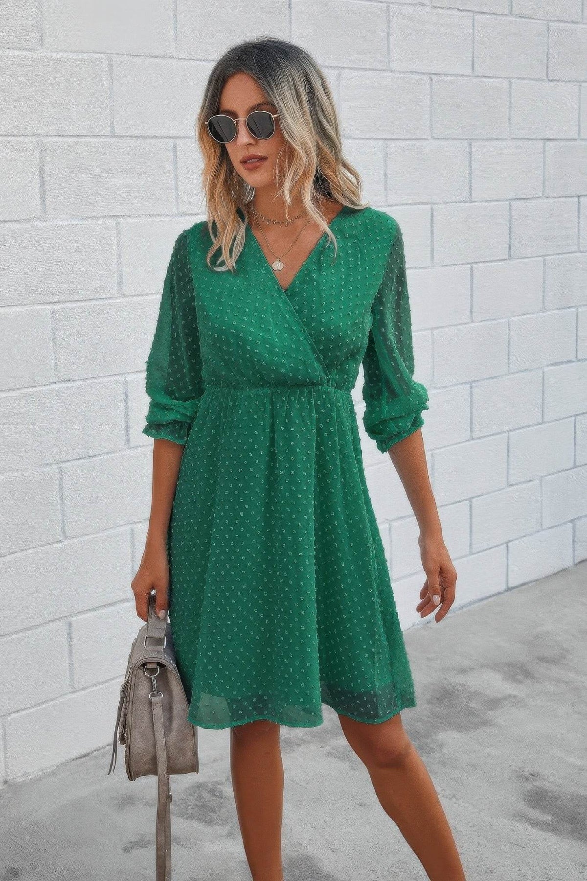 Delicate and romantic, this solid Swiss dot midi dress is a charming choice for any occasion. Made from 100% polyester, it features a lightweight, textured fabric that drapes beautifully on the body. The flounce sleeves and shirred bodice enhance the feminine silhouette, while the midi length offers graceful coverage and ease of movement. Perfect for everything from weekend outings to holiday getaways, this dress brings effortless elegance with a soft, playful touch.