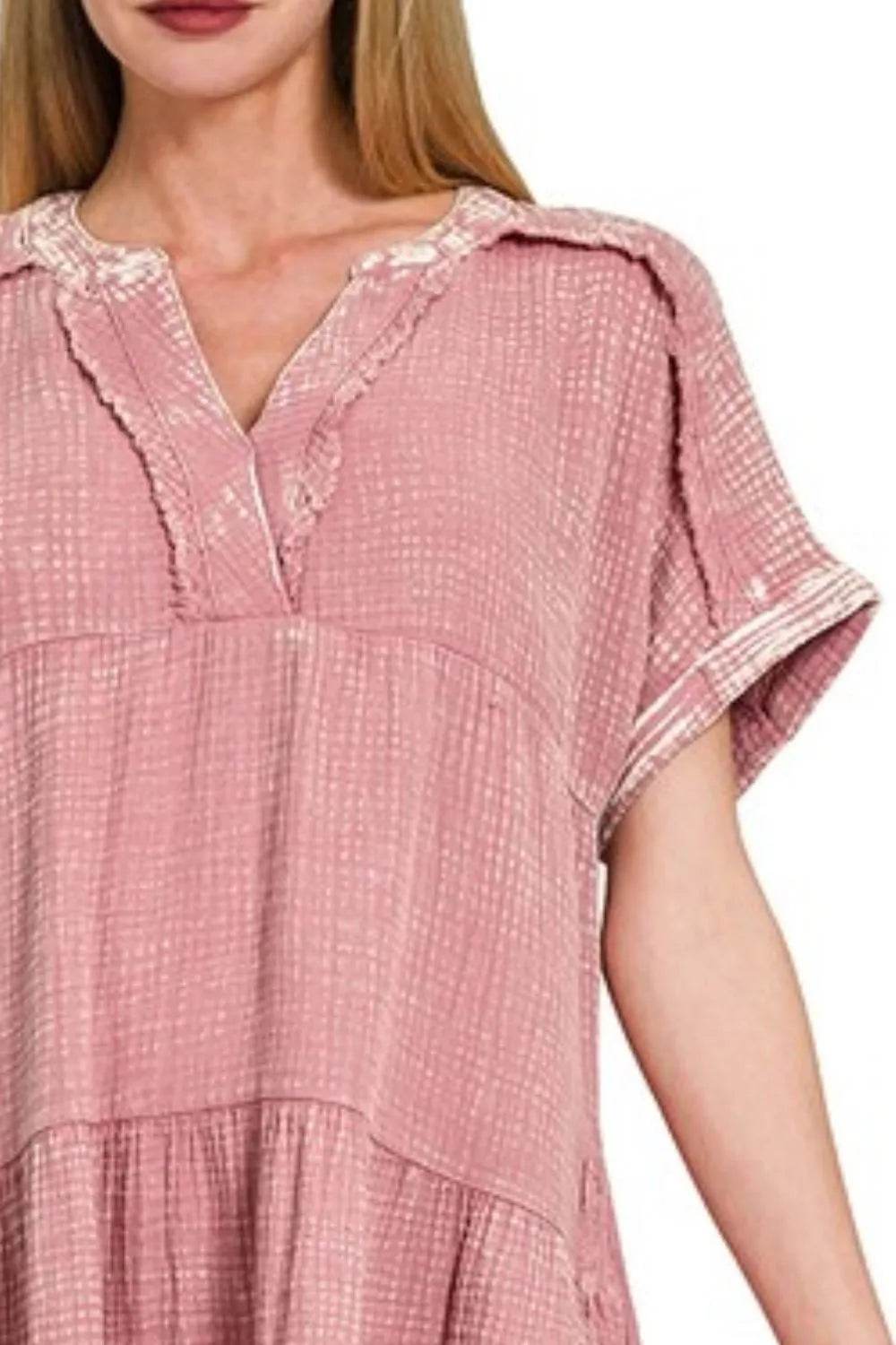 The Soft Short Sleeve Tiered Midi Dress is a delightful and comfortable piece that exudes effortless style. Its soft fabric and tiered design create a flowy and flattering silhouette that is perfect for any occasion. The short sleeves add a touch of casual charm to the dress, making it versatile for both daytime and evening events. Whether you're attending a garden party, going out for a lunch date, or simply running errands, this dress is a chic and easy option. Pair it with sandals or sneakers for a relaxed look, or dress it up with heels for a more polished ensemble. Elevate your wardrobe with the Soft Short Sleeve Tiered Midi Dress for a feminine and versatile style that will keep you looking chic and comfortable all day long.