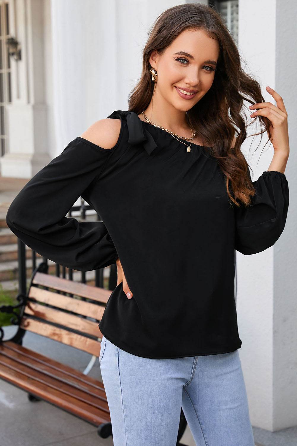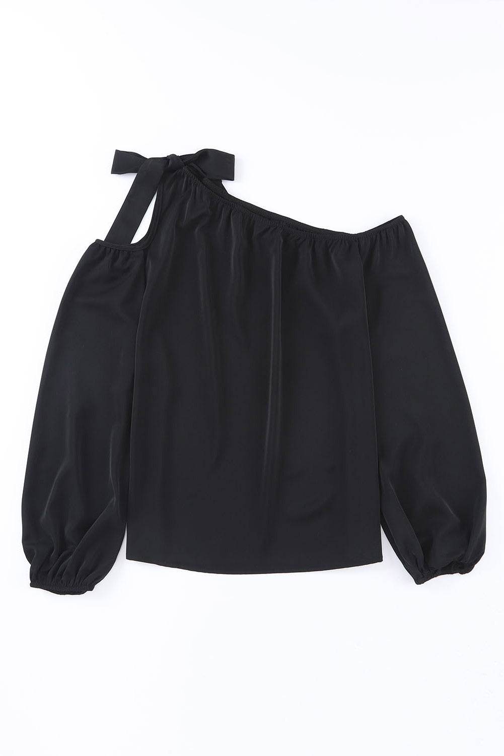 Asymmetrical one-shoulder neckline with dramatic layered ruffle detail