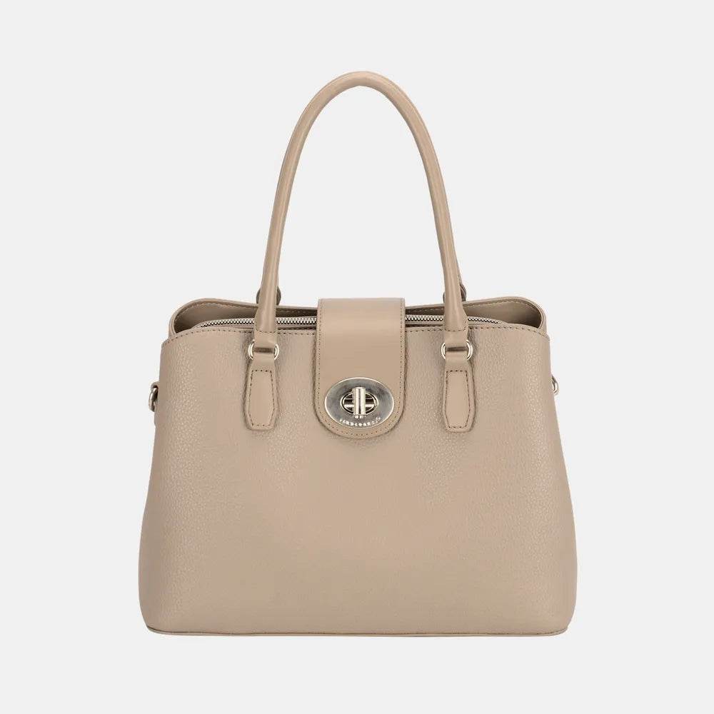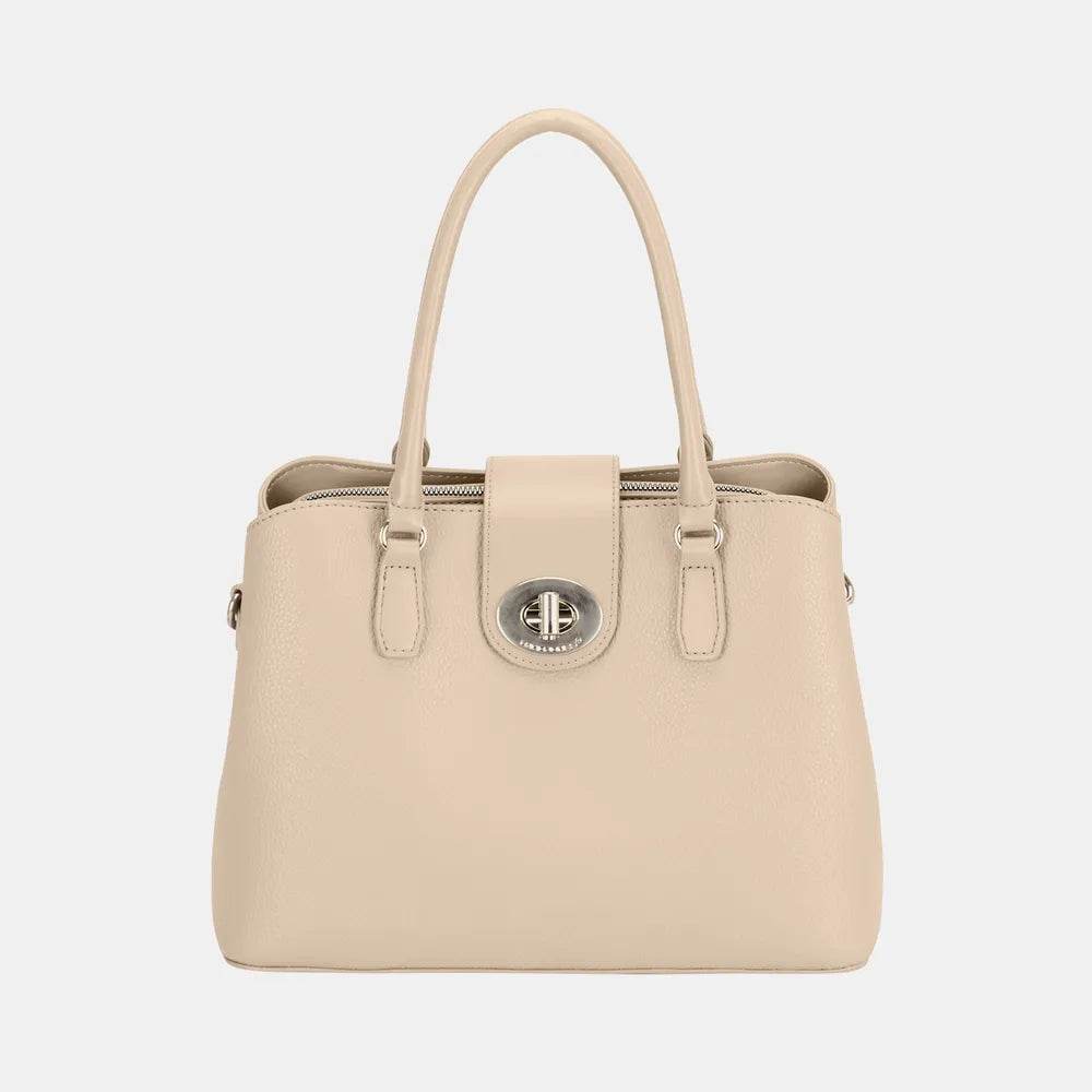 The PU Leather Twist-Lock Tote Bag is a sophisticated and chic accessory that combines style and practicality. Crafted from high-quality PU leather, this tote bag features a twist-lock closure for added security and a touch of elegance. Its spacious interior and sturdy handles make it perfect for carrying daily essentials in style. Whether for work or leisure, this versatile tote bag is a fashionable choice that complements a variety of outfits. Elevate your look with the sleek and timeless design of the PU Leather Twist-Lock Tote Bag.