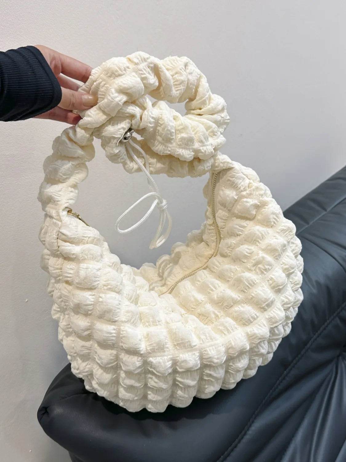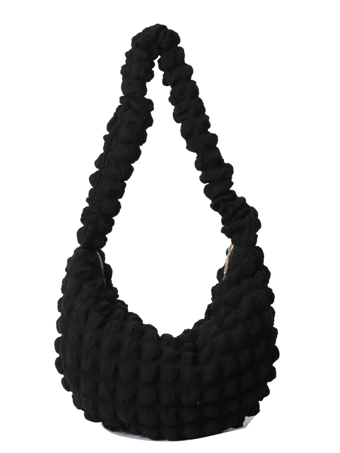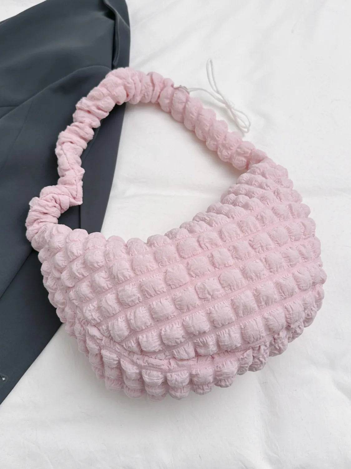 Drawstring Strap Bubble Textured Shoulder Bag - Ebony's Shopping