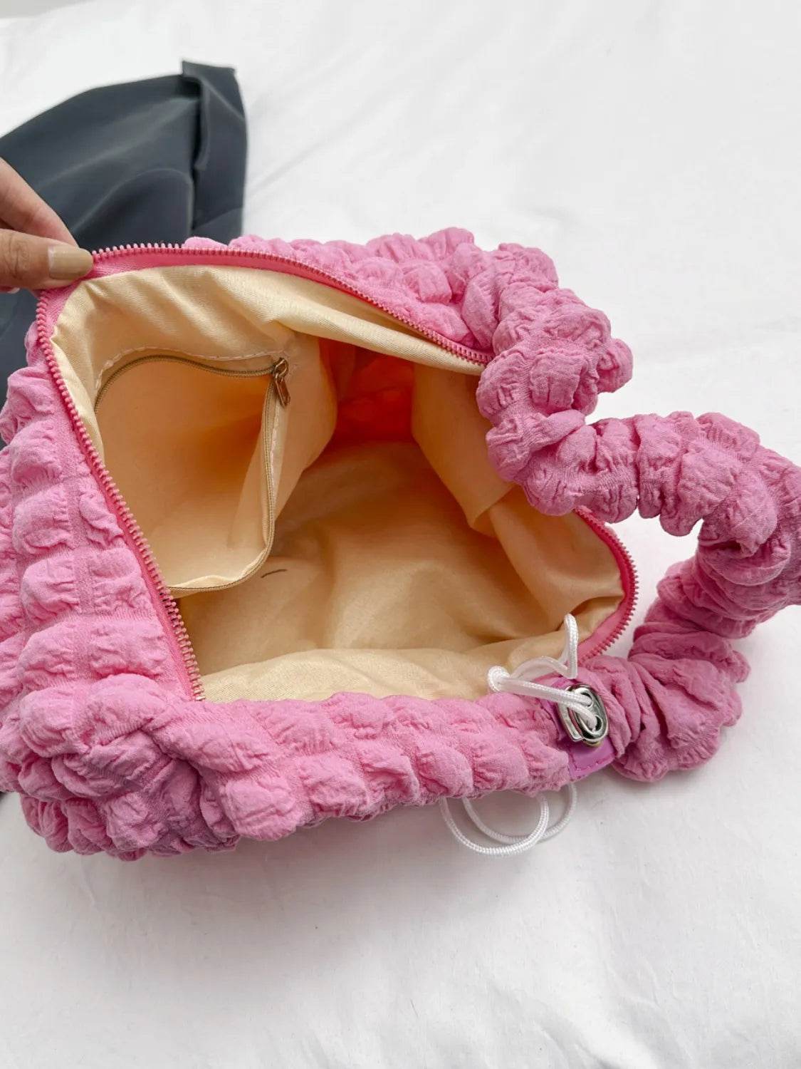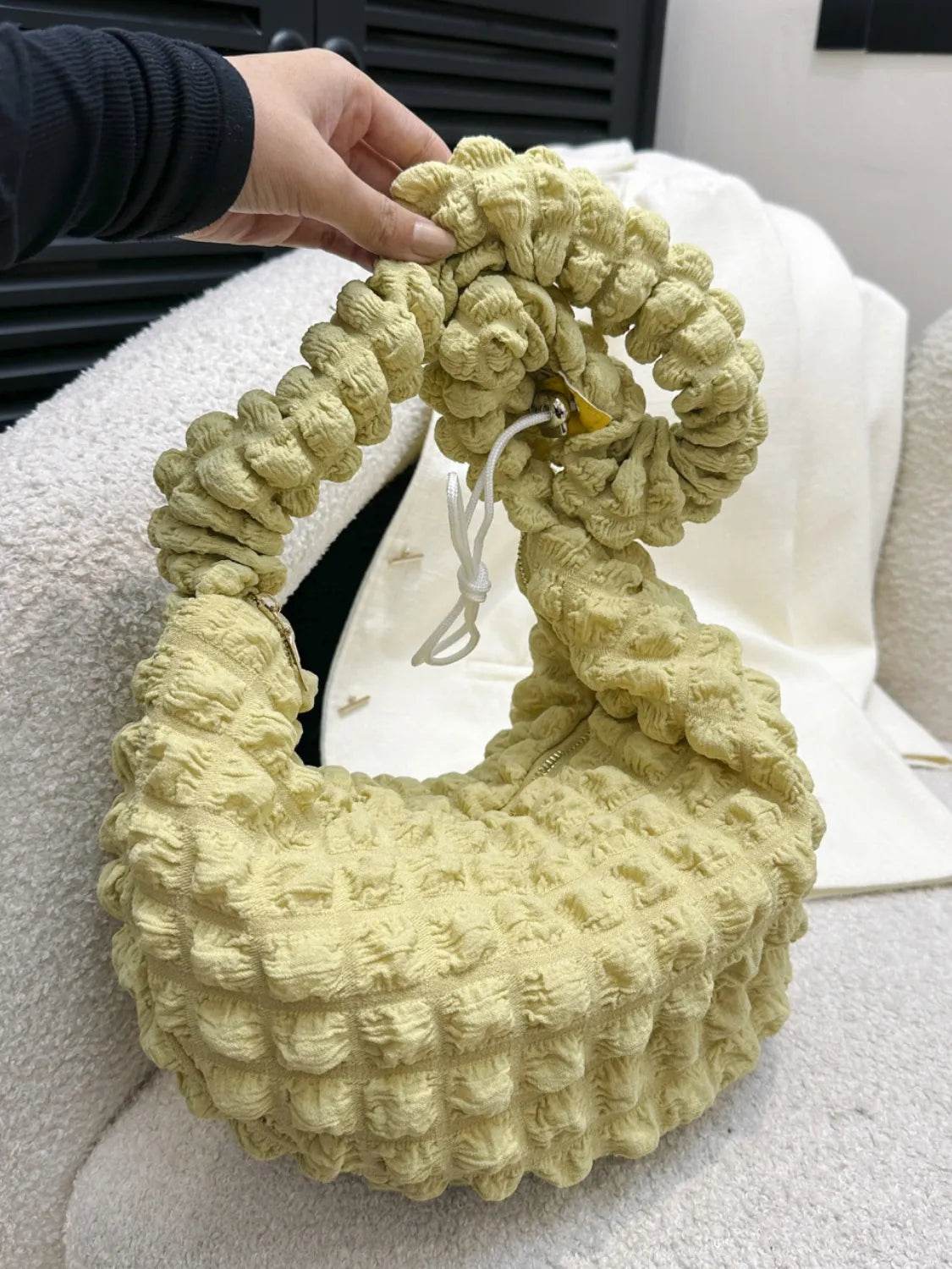 Drawstring Strap Bubble Textured Shoulder Bag