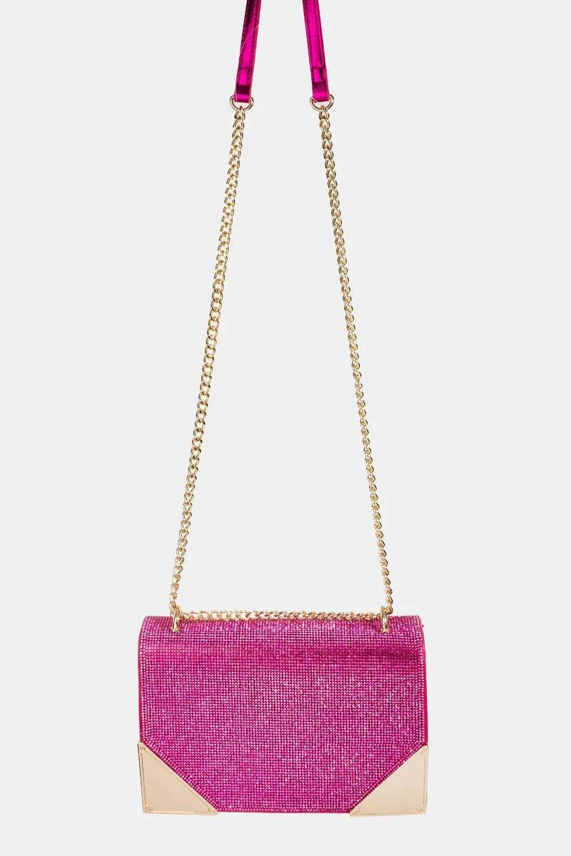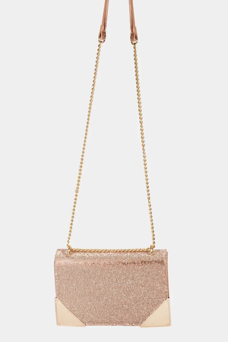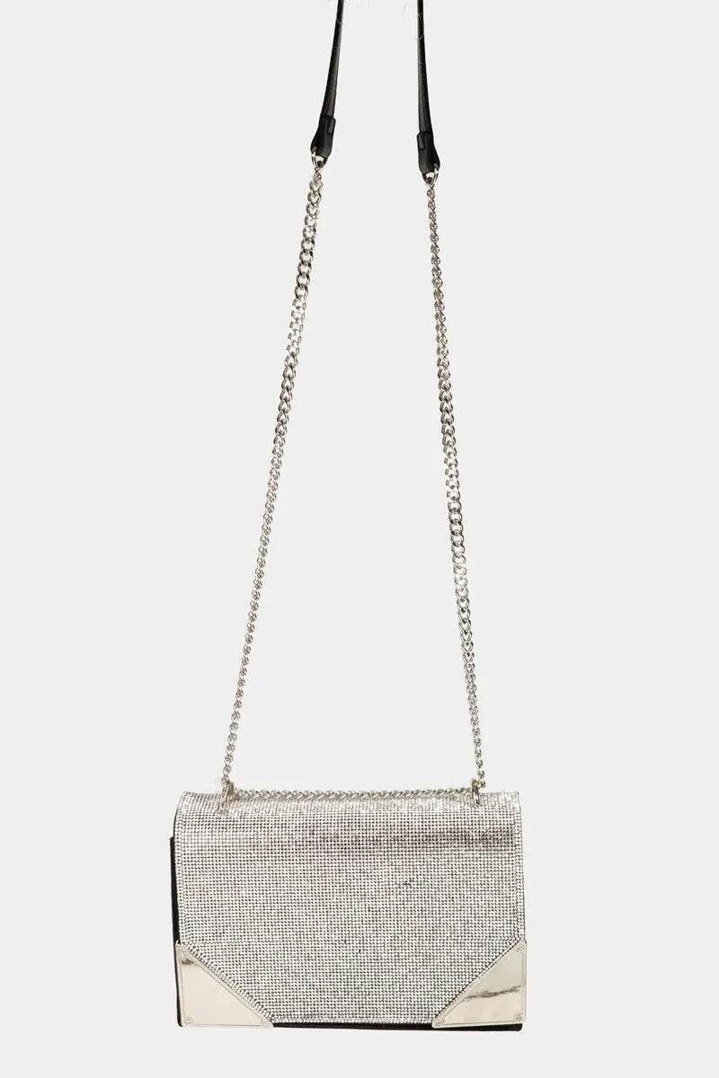 Fame Rhinestone Studded Rectangle Crossbody Bag