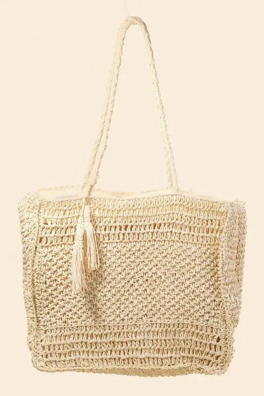 The straw knit tote bag is a stylish and practical accessory for the summer months. Made from durable straw material, this tote bag is perfect for carrying your essentials to the beach, farmer's market, or out for a casual day. The knit design adds a touch of texture and style, making it a fashionable choice for any warm-weather outfit. With plenty of room for your belongings and a sturdy construction, this tote bag is both chic and functional for your summer adventures.