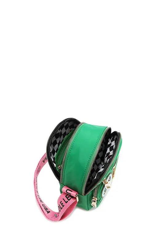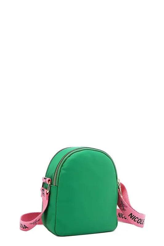 Our color patch crossbody combines elegance with practicality, featuring a soft, rounded silhouette. With two main zip compartments and additional front zip pockets, it offers ample storage space while adding a touch of vibrant color to your look.