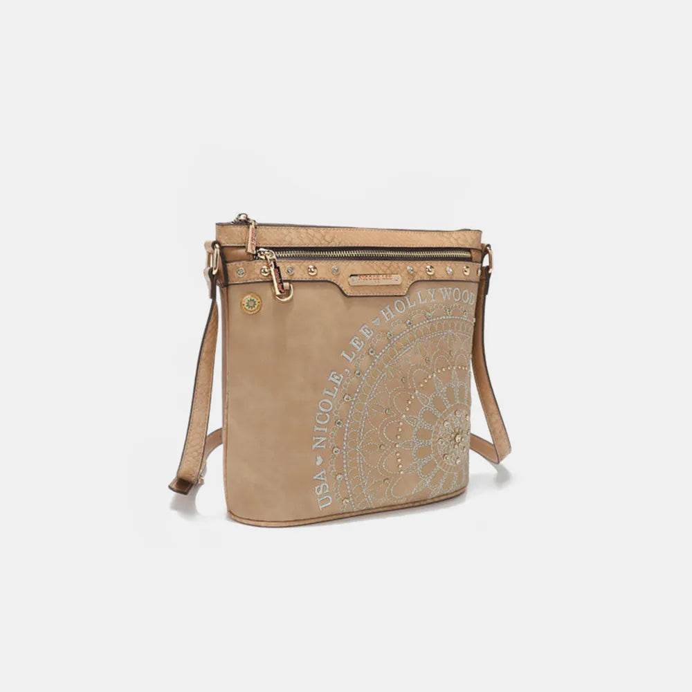 Elevate your everyday style with our timeless and modern crossbody bag, designed to be a versatile staple in your wardrobe. Featuring convenient front and back zip pockets, this bag offers practical storage for your essentials on the go. The front design is adorned with eye-catching diamond rhinestones and metallic stitching, adding a touch of glamour and sophistication to your look. Whether you're running errands or heading out for a night on the town, this crossbody bag combines functionality with a touch of elegance for a chic and stylish accessory. Make a statement with this must-have accessory that effortlessly blends classic charm with contemporary flair, perfect for any occasion.