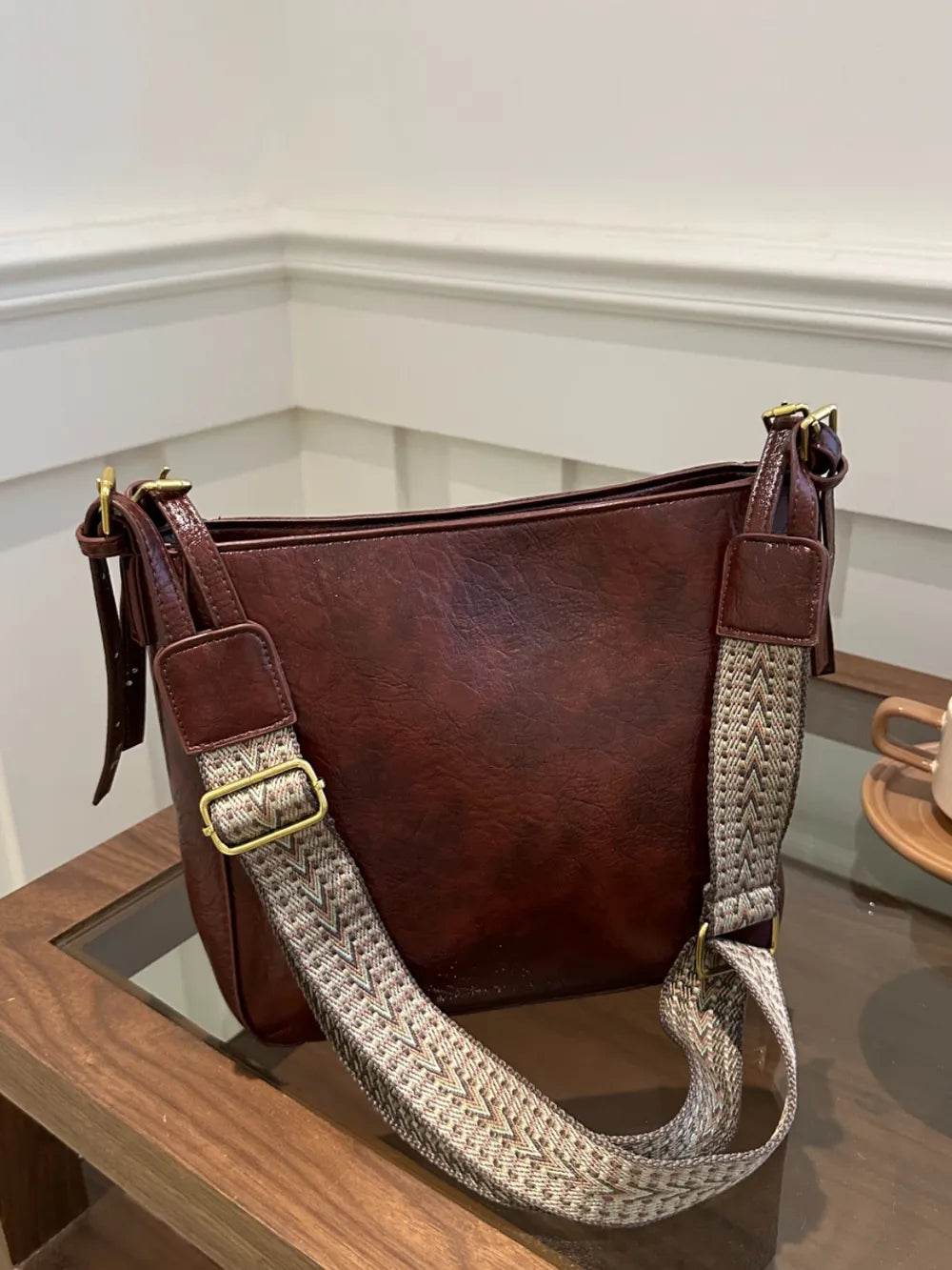 PU Leather Adjustable Strap Crossbody Bag with Pouch