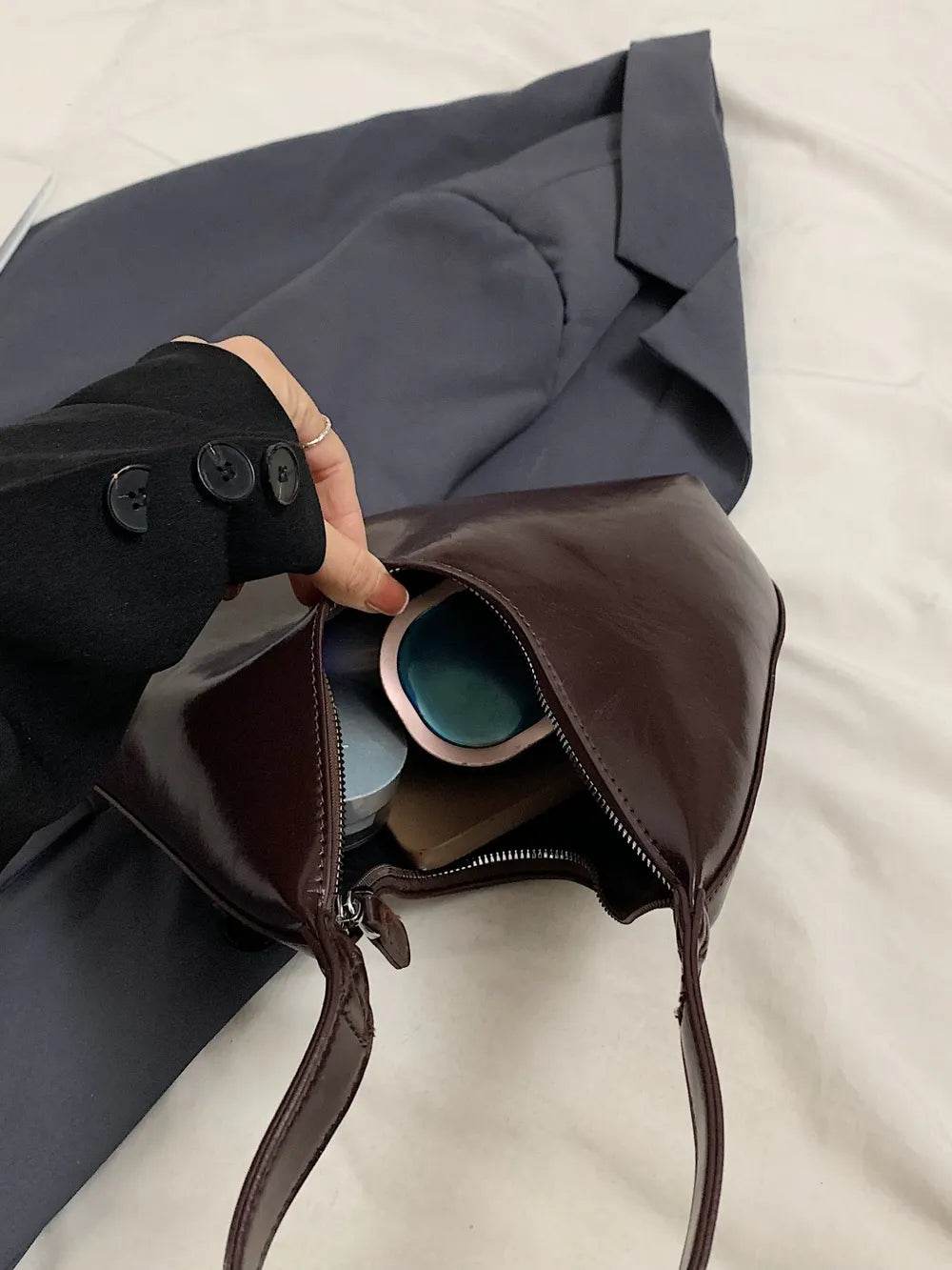 PU Leather Moon Shape Shoulder Bag - Ebony's Shopping