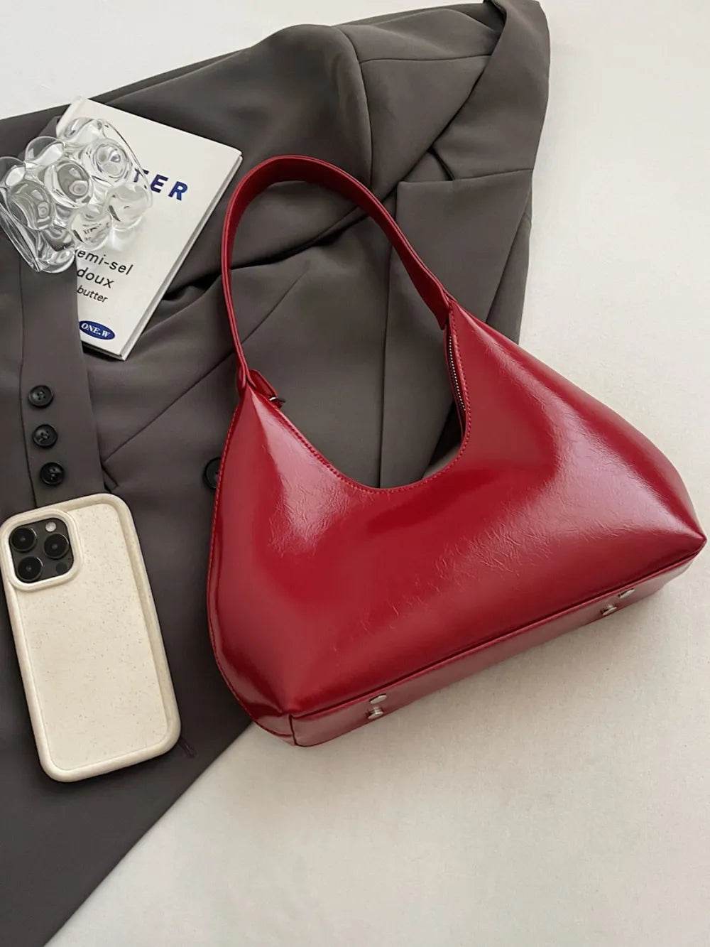 PU Leather Shoulder Bag with Zip - Ebony's Shopping
