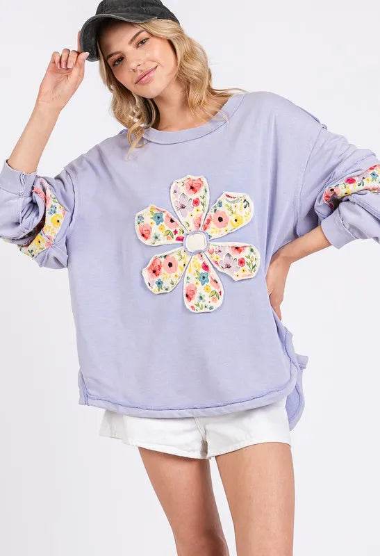Stay cozy and stylish in this Daisy Patch Applique Long Sleeve Sweatshirt. The daisy patch applique adds a cute and feminine touch to this classic sweatshirt style. With long sleeves for extra warmth, this sweatshirt is perfect for layering or wearing on its own. The soft and comfortable fabric ensures all-day comfort. Pair it with your favorite jeans for a casual and relaxed look, or dress it up with a skirt and boots for a more fashion-forward outfit. Embrace a laid-back yet trendy vibe with this charming sweatshirt featuring dainty daisy details.