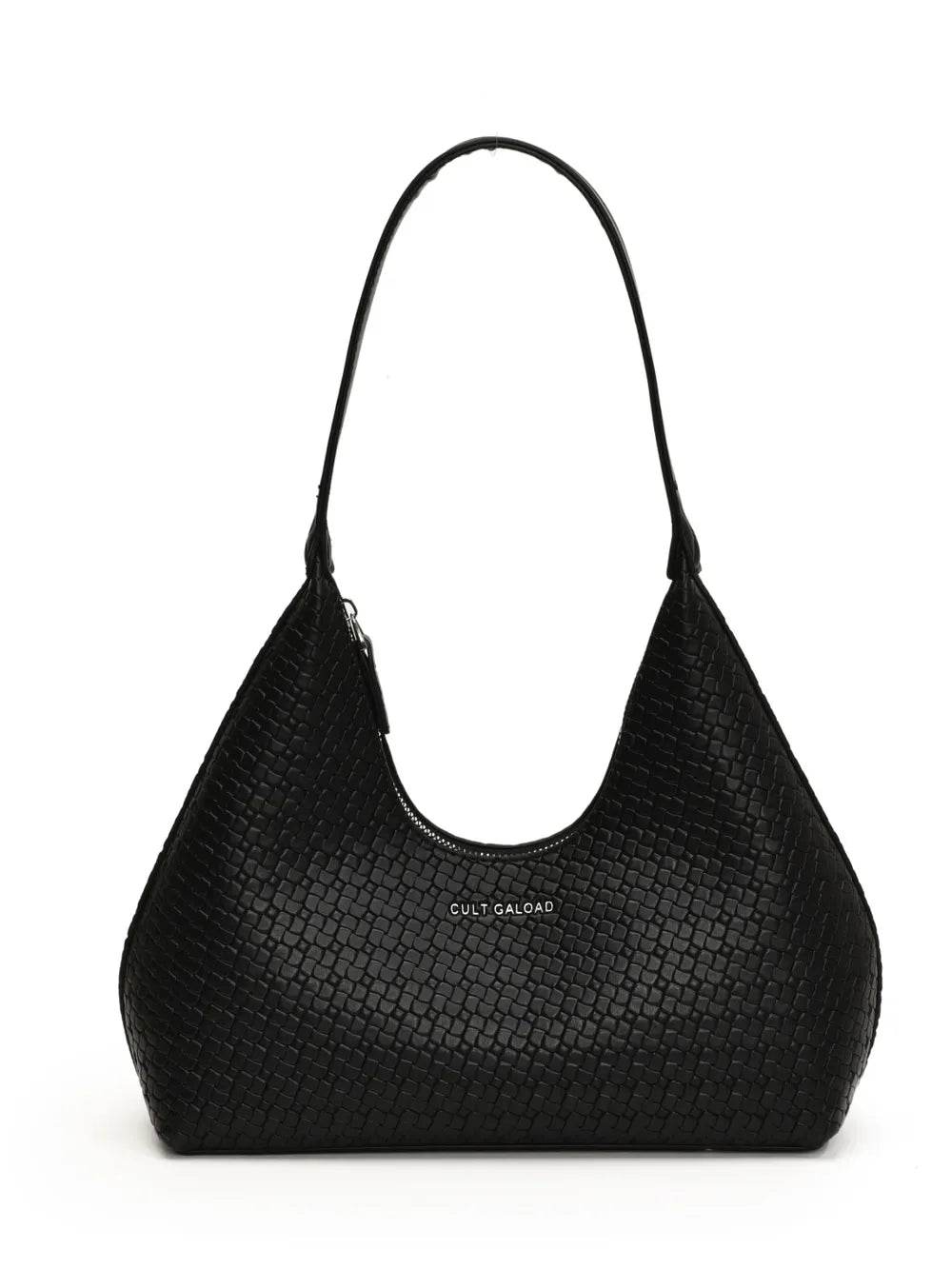 Texture PU Leather Shoulder Bag - Ebony's Shopping