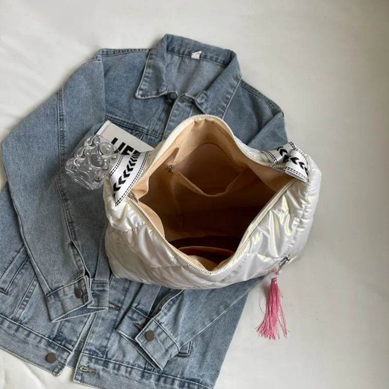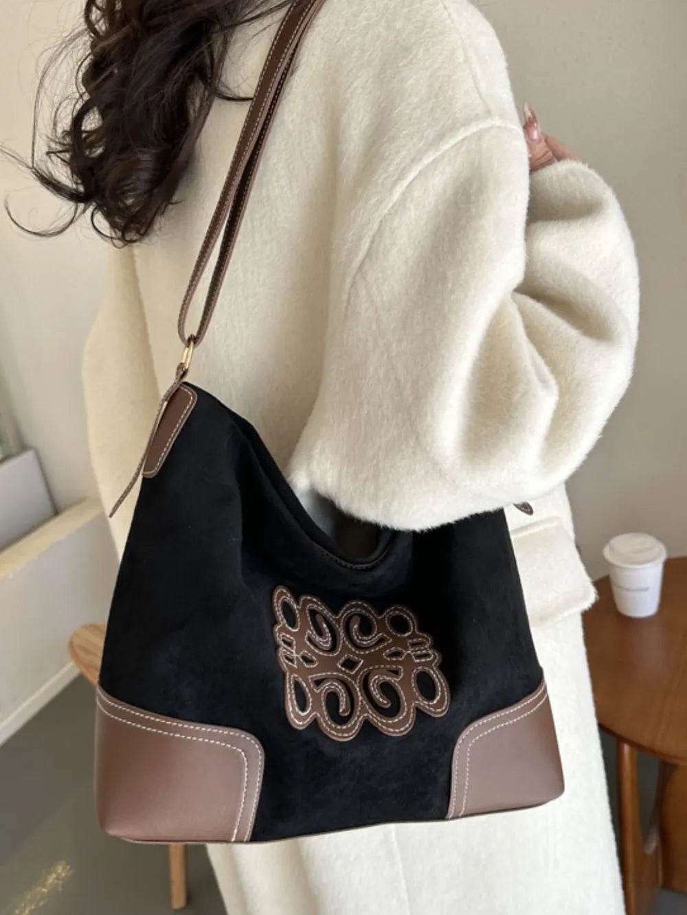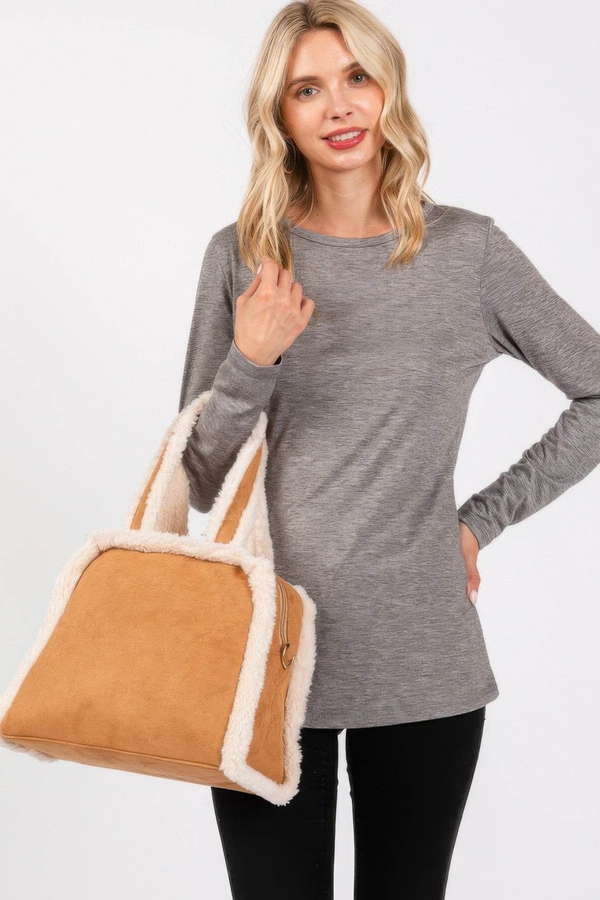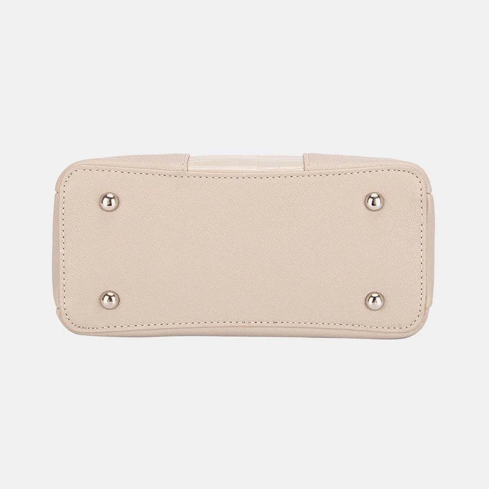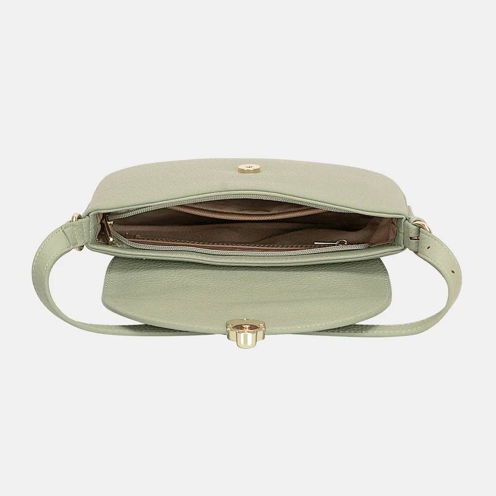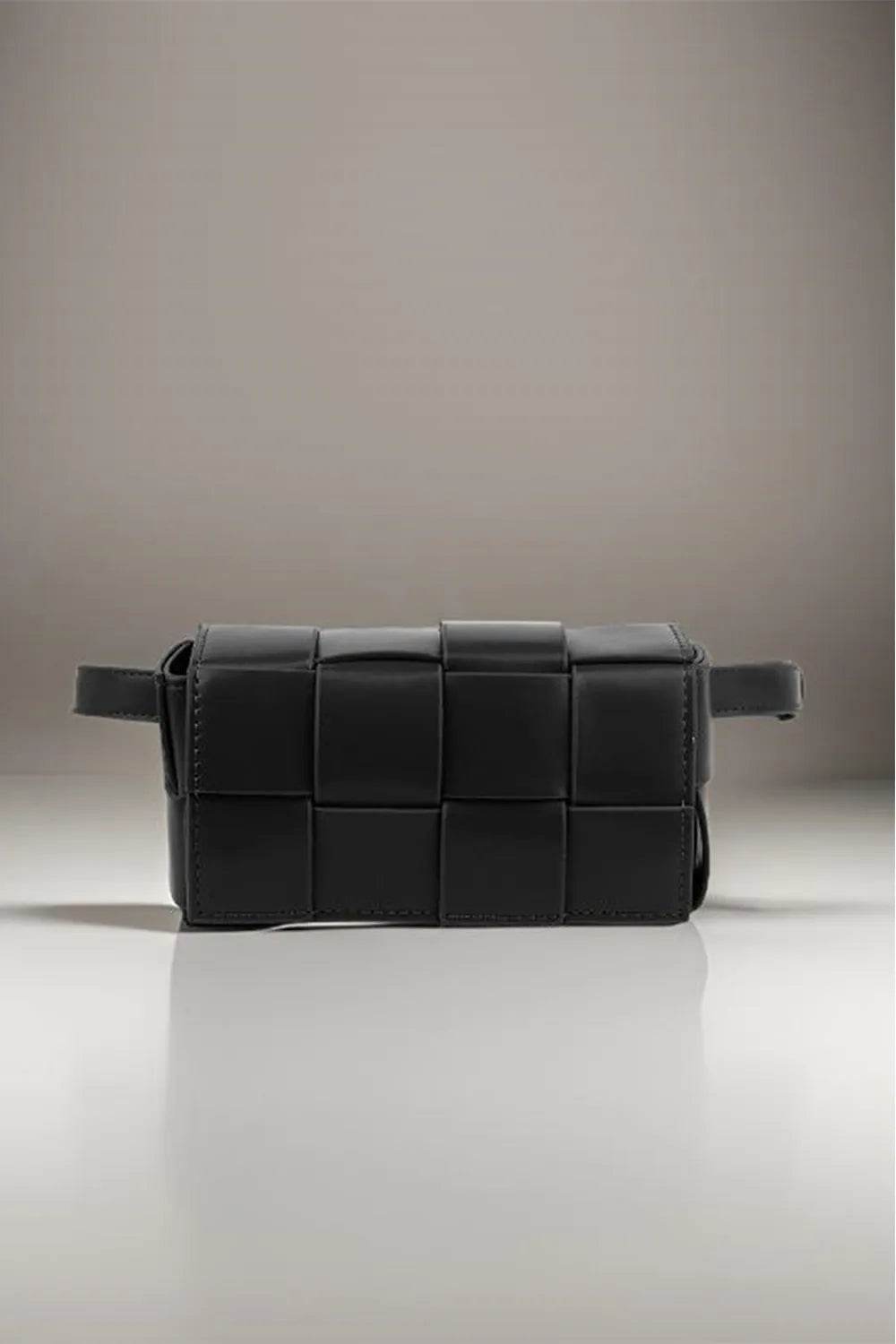 Includes adjustable, detachable crossbody strap (14"-27" drop)