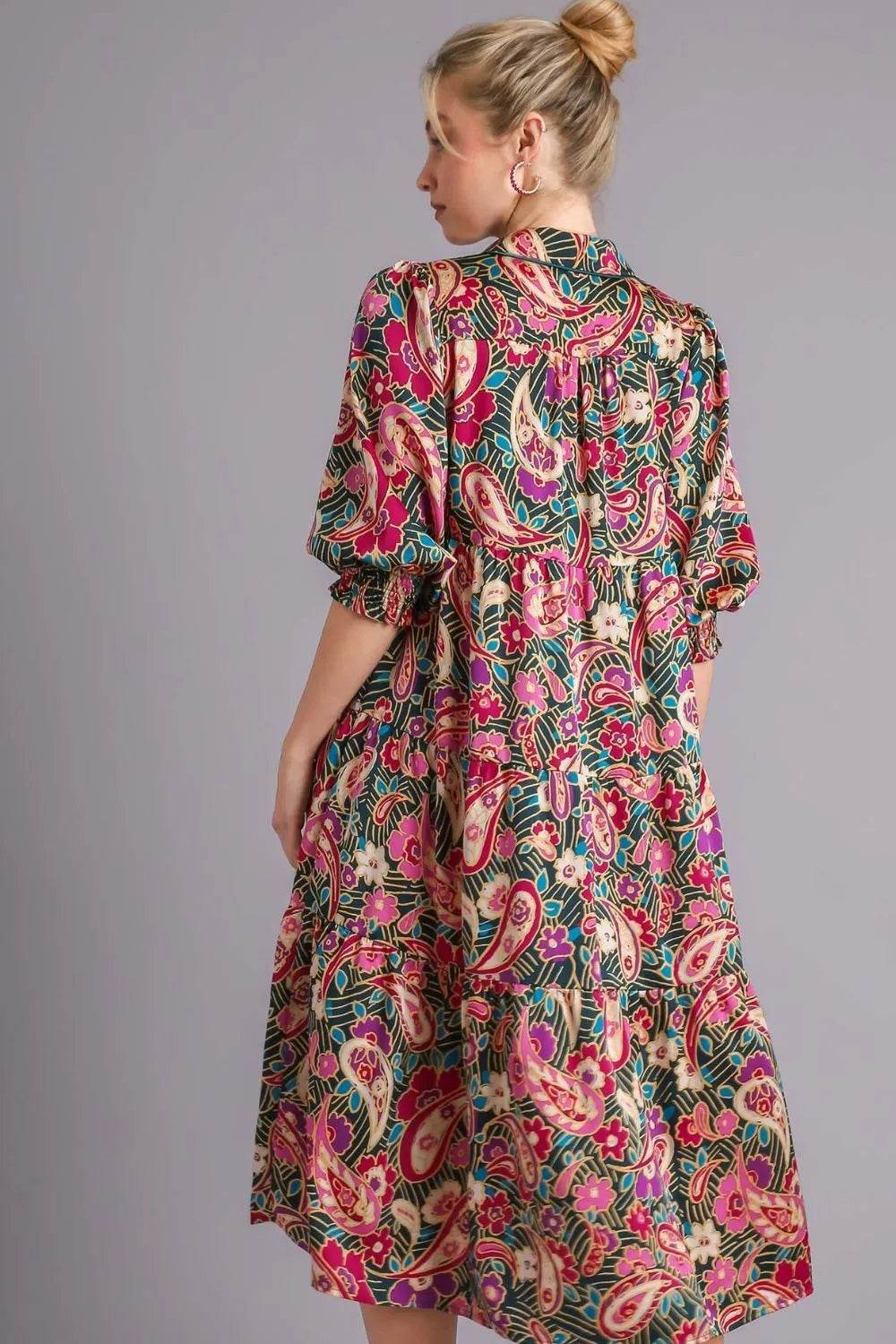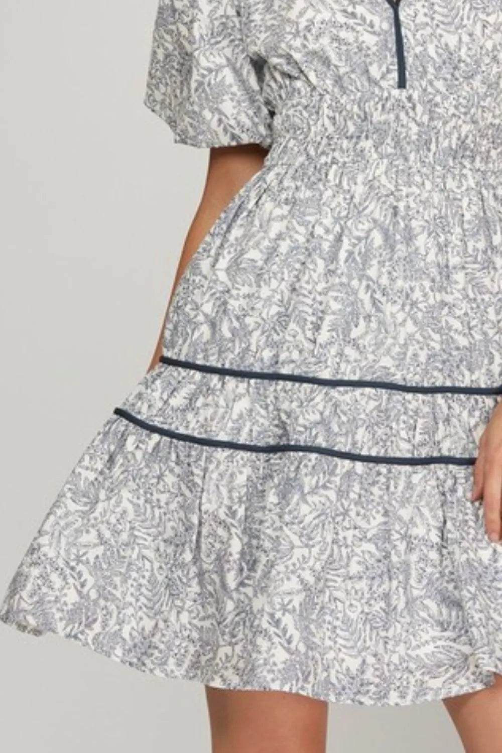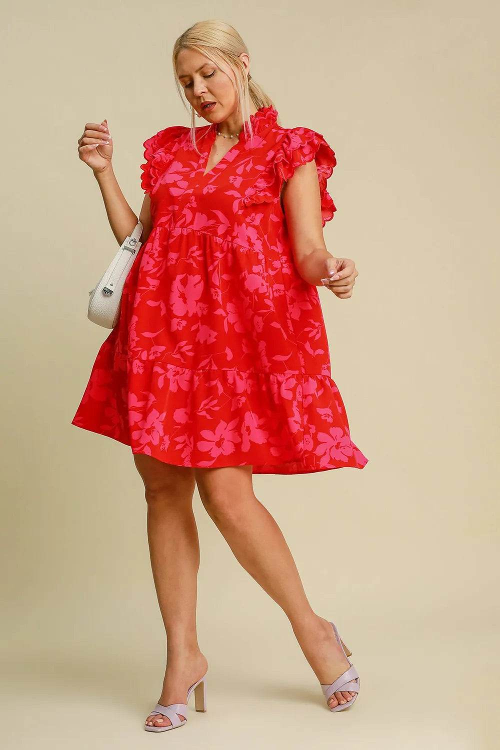 Umgee Full Size Raw Hem Folded Sleeve Tiered Dress Plus Size