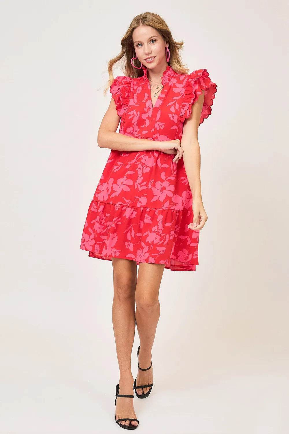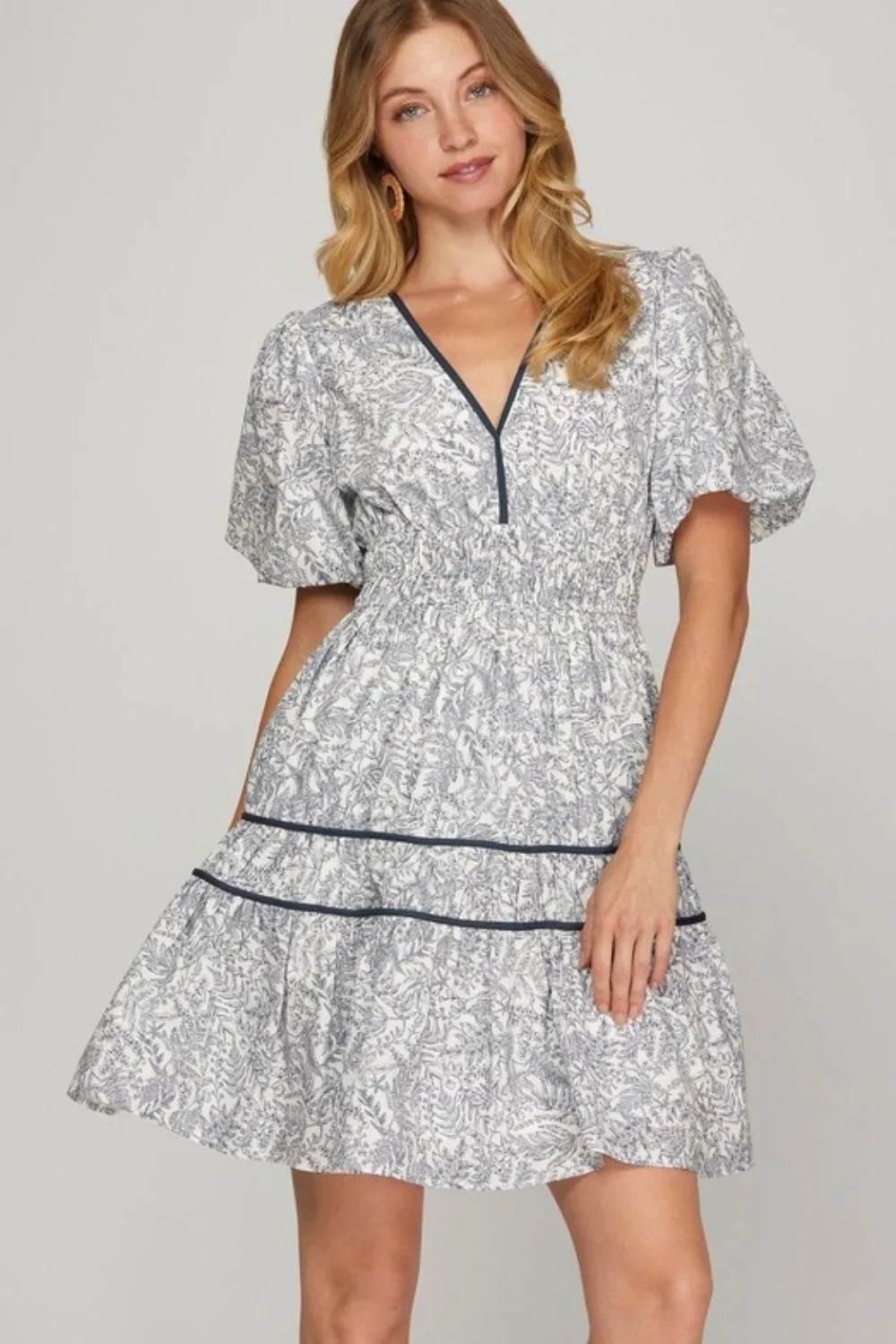 The Raw Hem Folded Sleeve Tiered Dress is a trendy and casual option for various outings. This dress features a raw hem design, folded sleeves, and tiered layers for a relaxed and laid-back look. The raw hem adds a touch of edge to the dress, while the tiered layers create a flowy and flattering silhouette. Pair it with sneakers or sandals for a comfortable and stylish ensemble perfect for everyday wear.