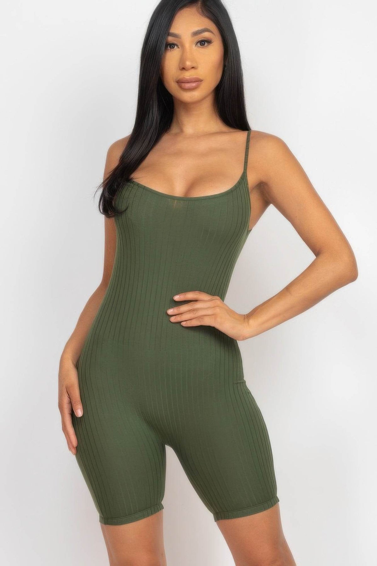 Sleek, stretchy, and endlessly versatile — the Ribbed Bodycon Romper is designed for movement and style. This one-piece features a scoop neckline, spaghetti straps, and a mini biker short cut that hugs your curves for a flattering silhouette. Made with ribbed knit fabric, it’s perfect for lounging, layering, or heading out in sporty-chic fashion.