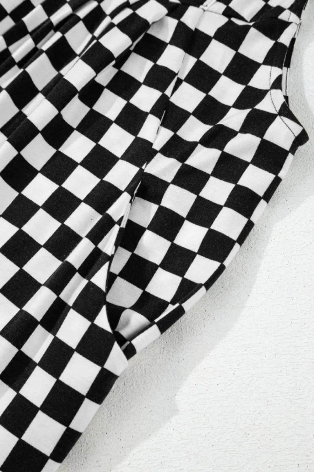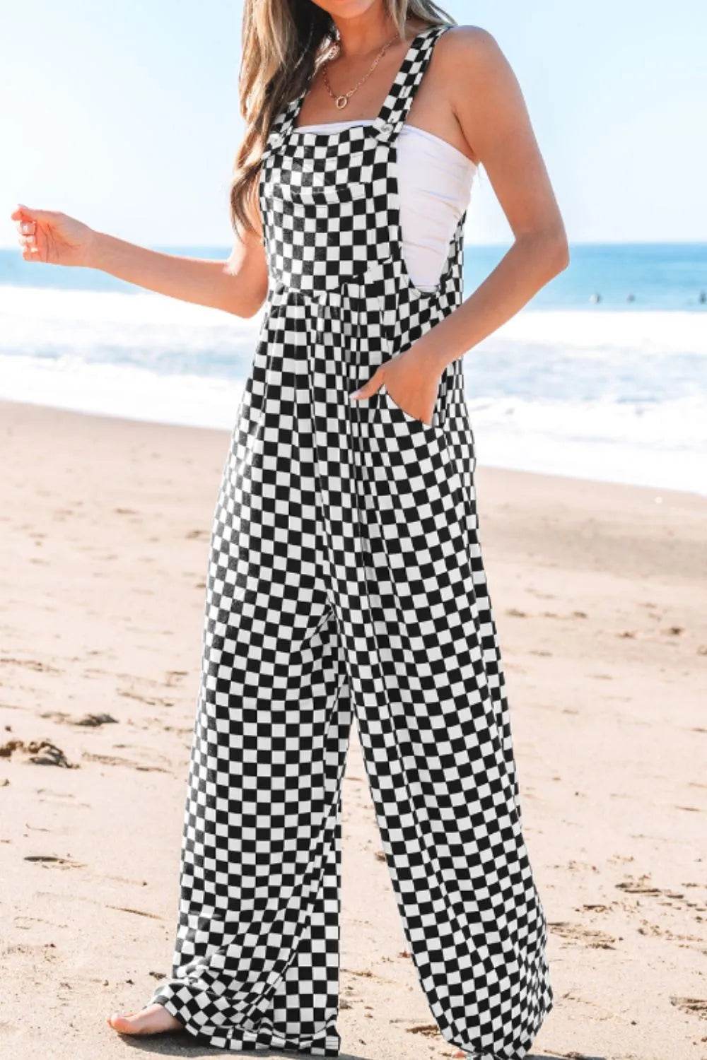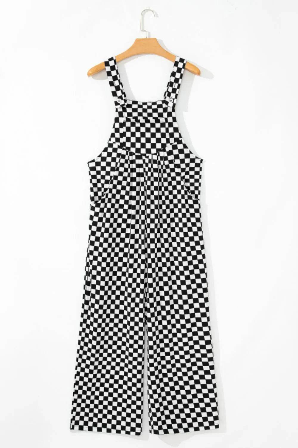 Checkered Print Pocketed Wide Leg Jumpsuit - Ebony's Shopping