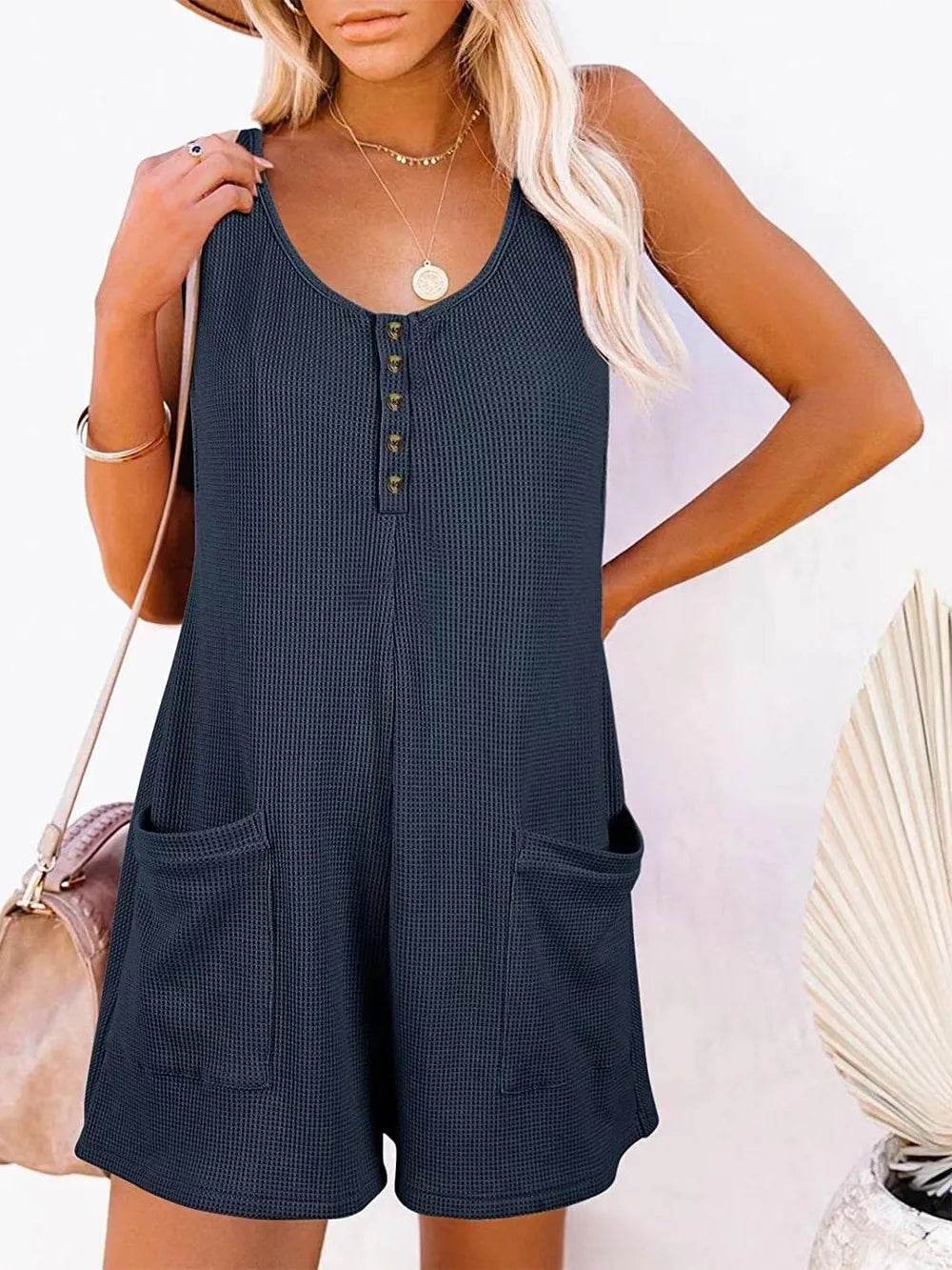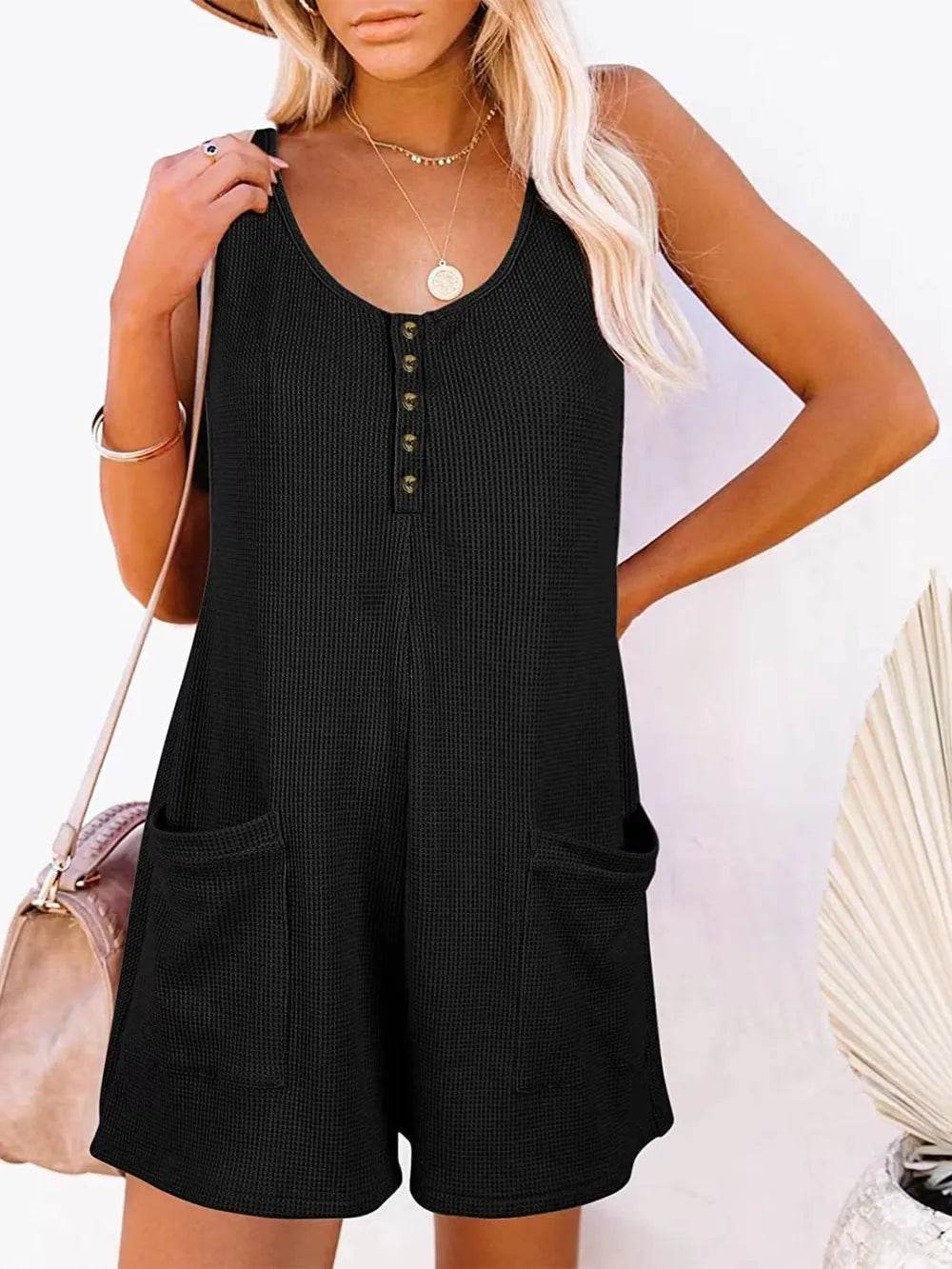 Full Size Pocketed Scoop Neck Sleeveless Romper - Ebony's Shopping