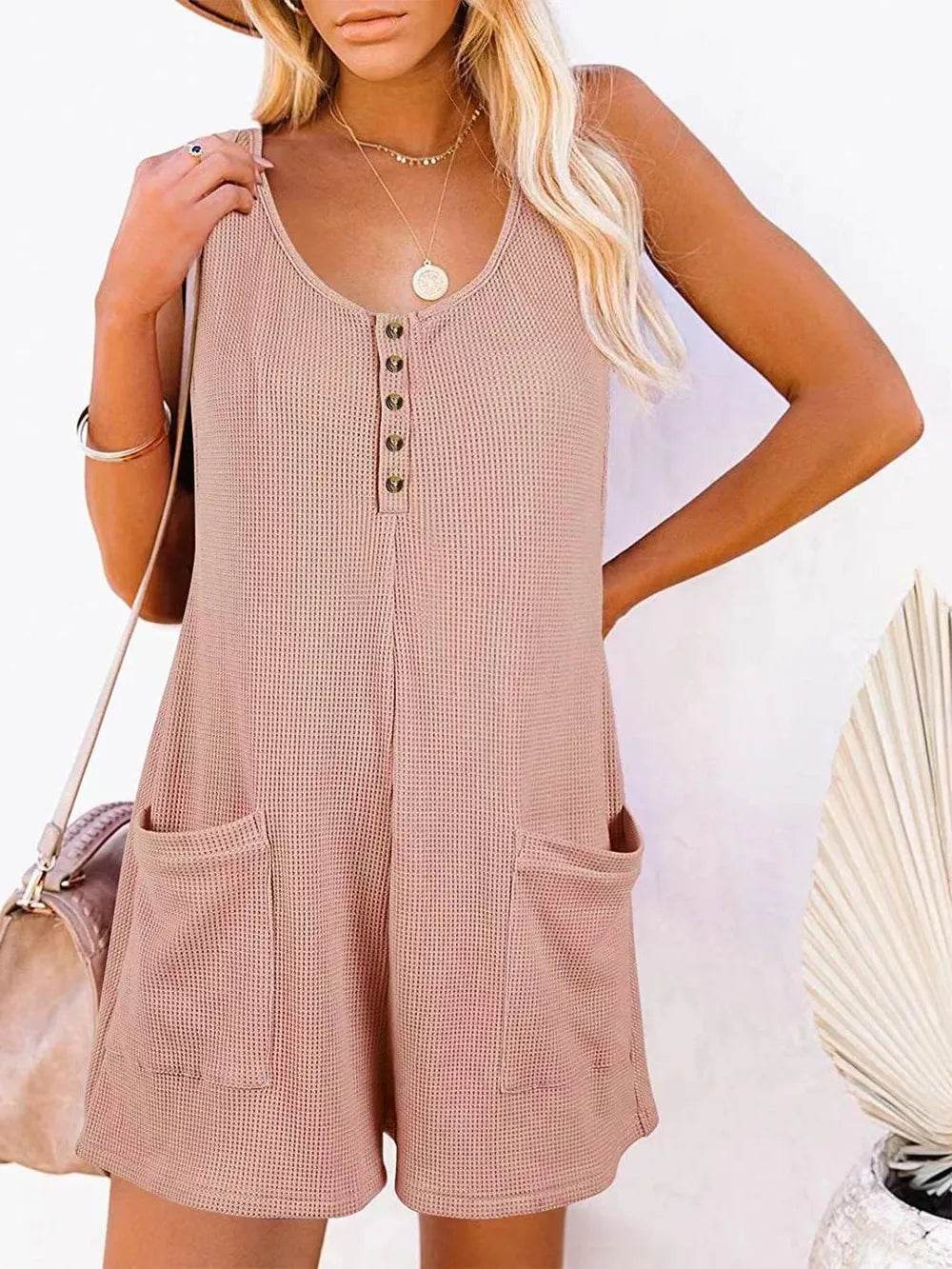Full Size Pocketed Scoop Neck Sleeveless Romper