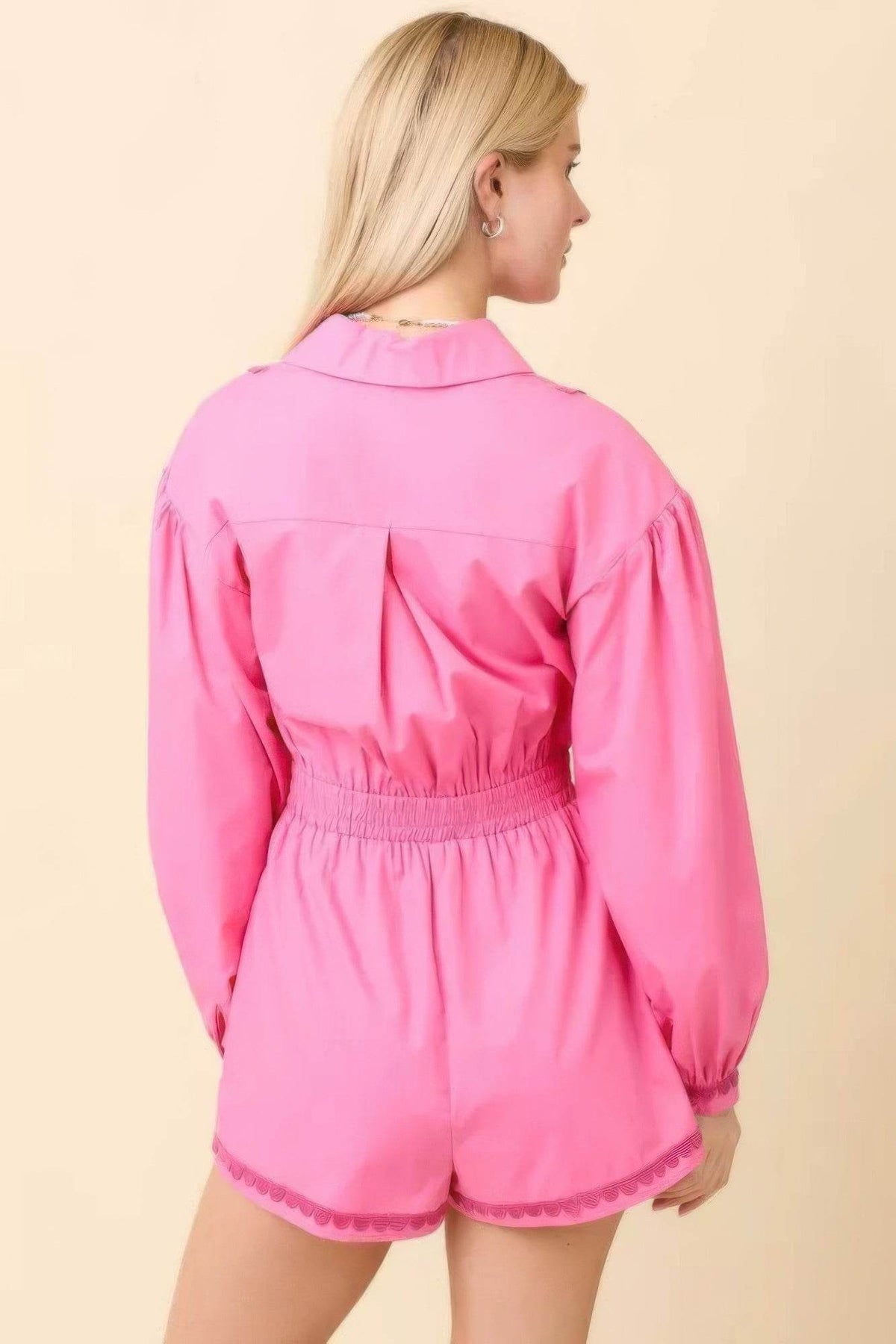 The Long Sleeve Romper with Contrasting Scallop Lace brings a sophisticated touch to your casual wardrobe. Crafted from a comfortable blend of 80% polyester and 20% cotton, this romper features delicate scallop lace that contrasts beautifully against the fabric, creating an eye-catching detail. The long sleeves offer a hint of coverage, while the tailored fit flatters your shape effortlessly. This versatile piece is perfect for weekend outings, daytime gatherings, or date nights, giving you a polished yet relaxed look.