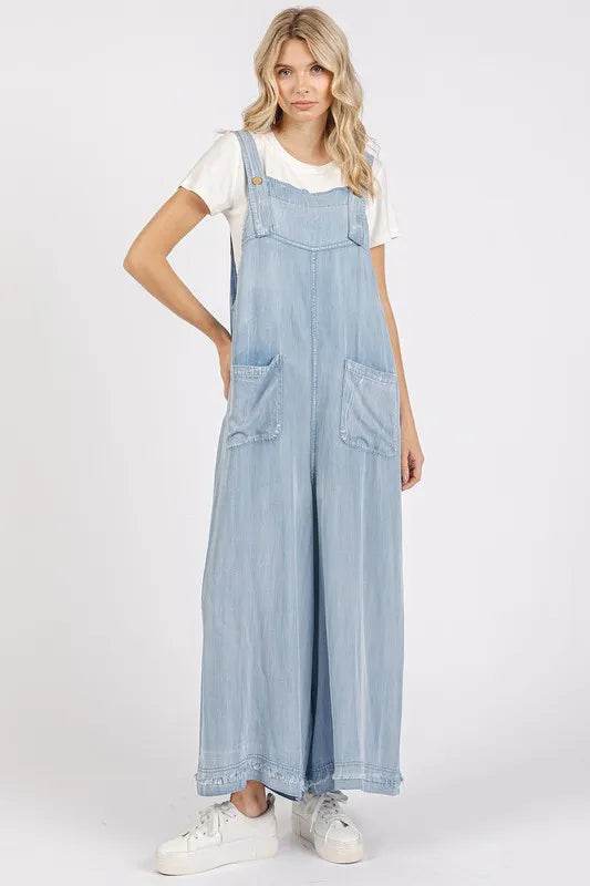 Mittoshop Wide Strap Wide Leg Overalls with Pockets