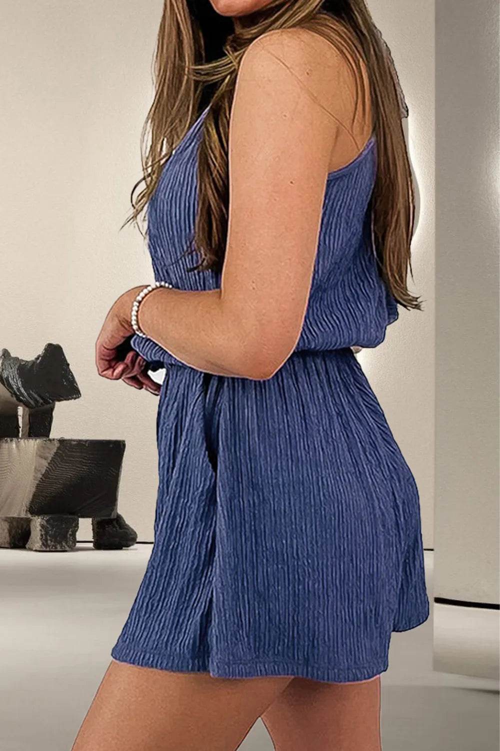 Tied Textured Pocketed Sleeveless Romper - Ebony's Shopping