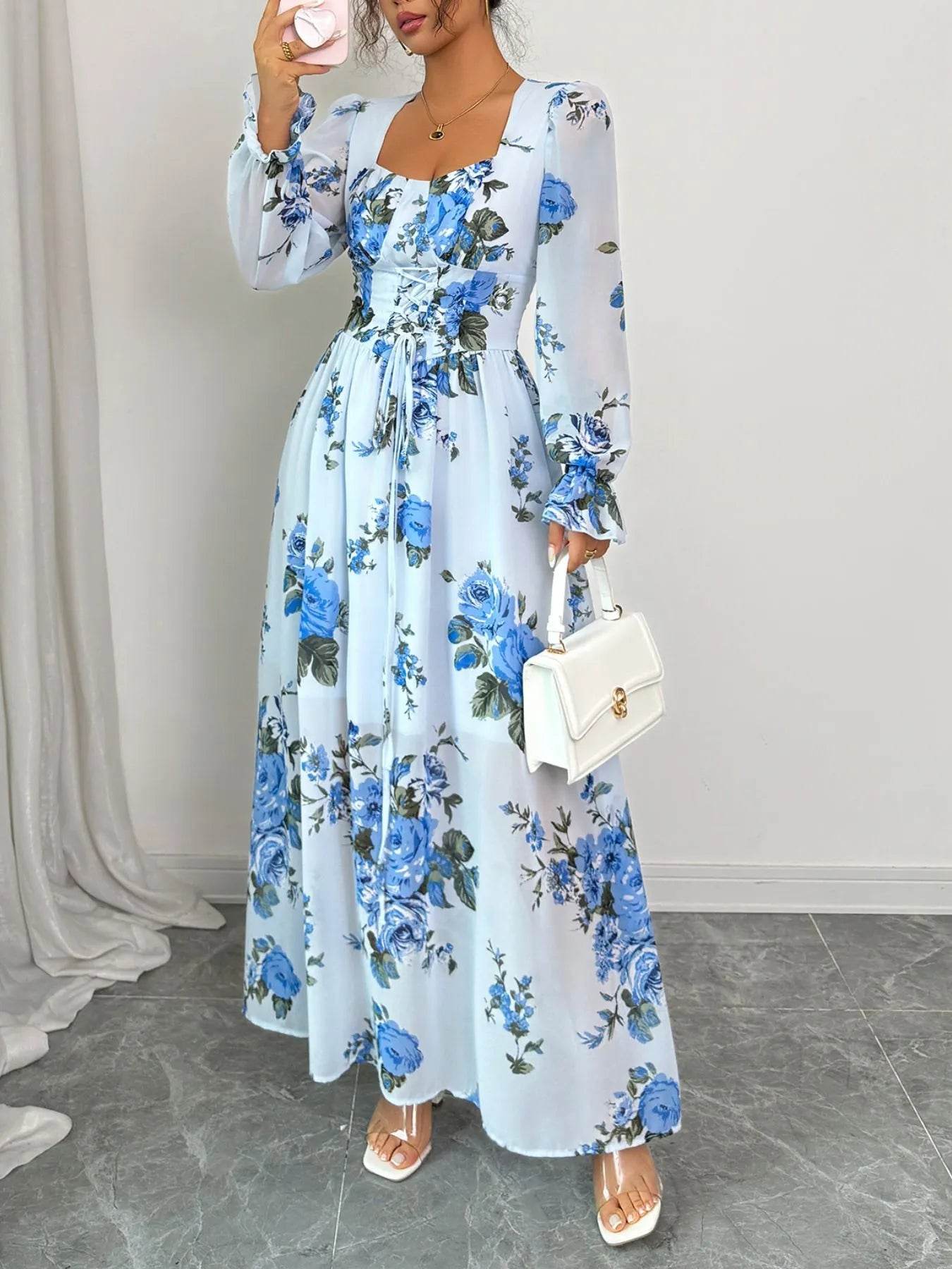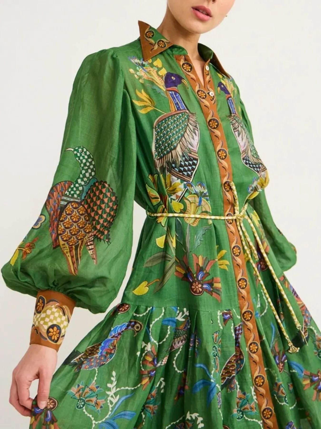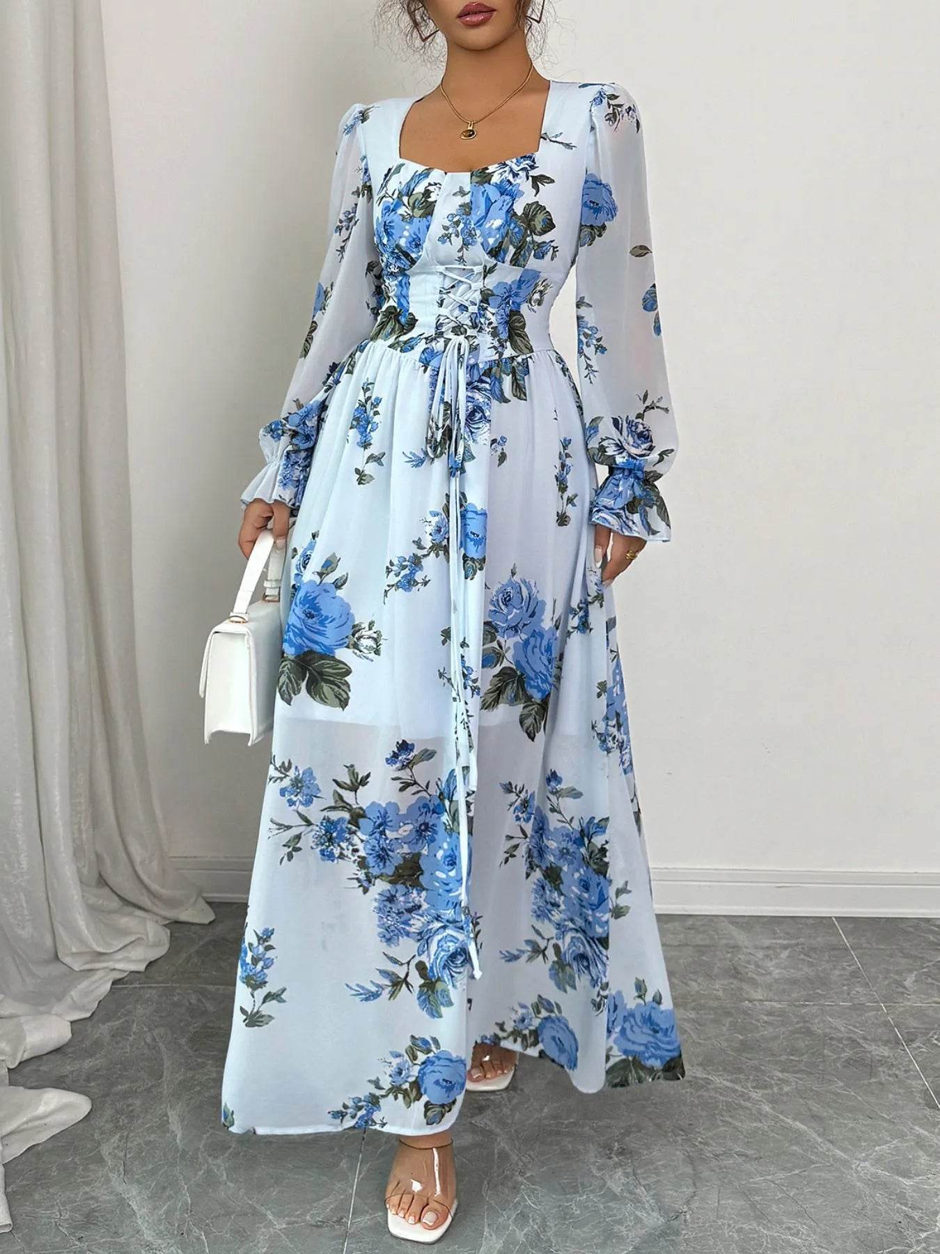 - Feature: Long sleeve, puff sleeve, frill, flounce hem, midi