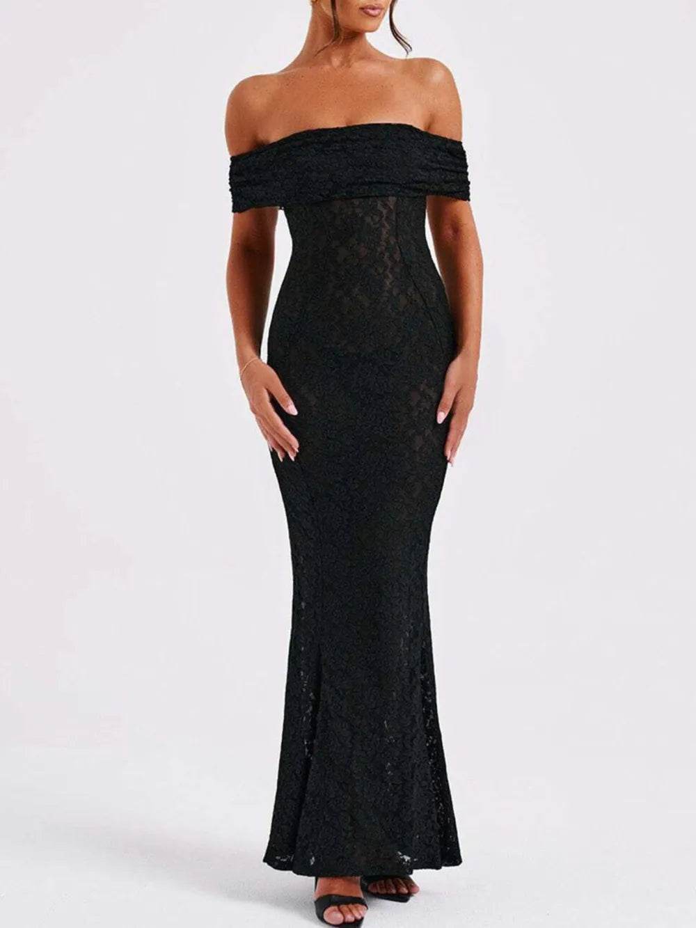 Devine Lace Off-Shoulder Maxi Dress - Ebony's Shopping