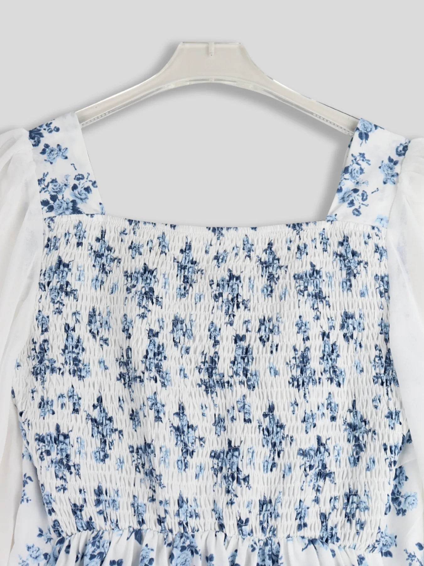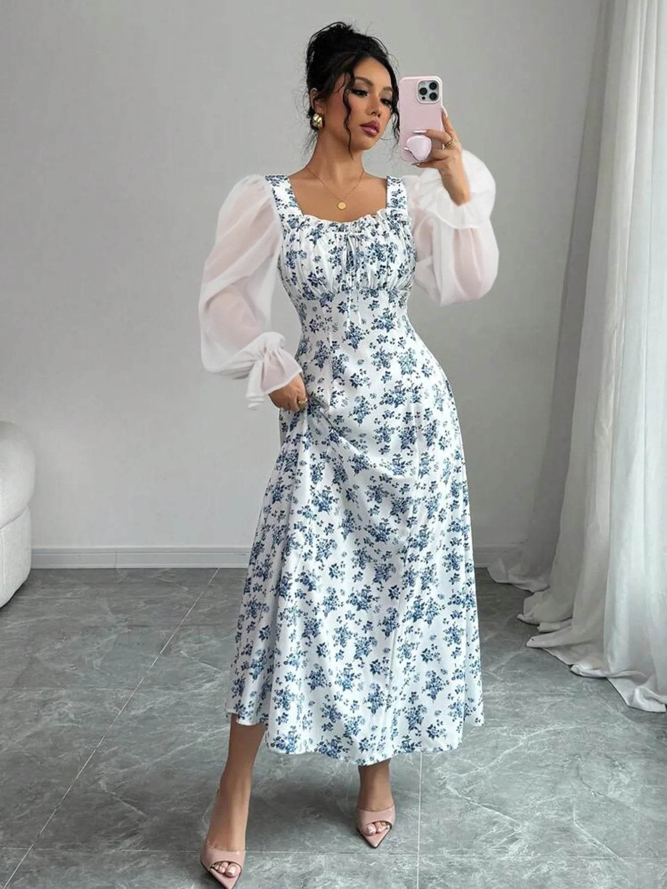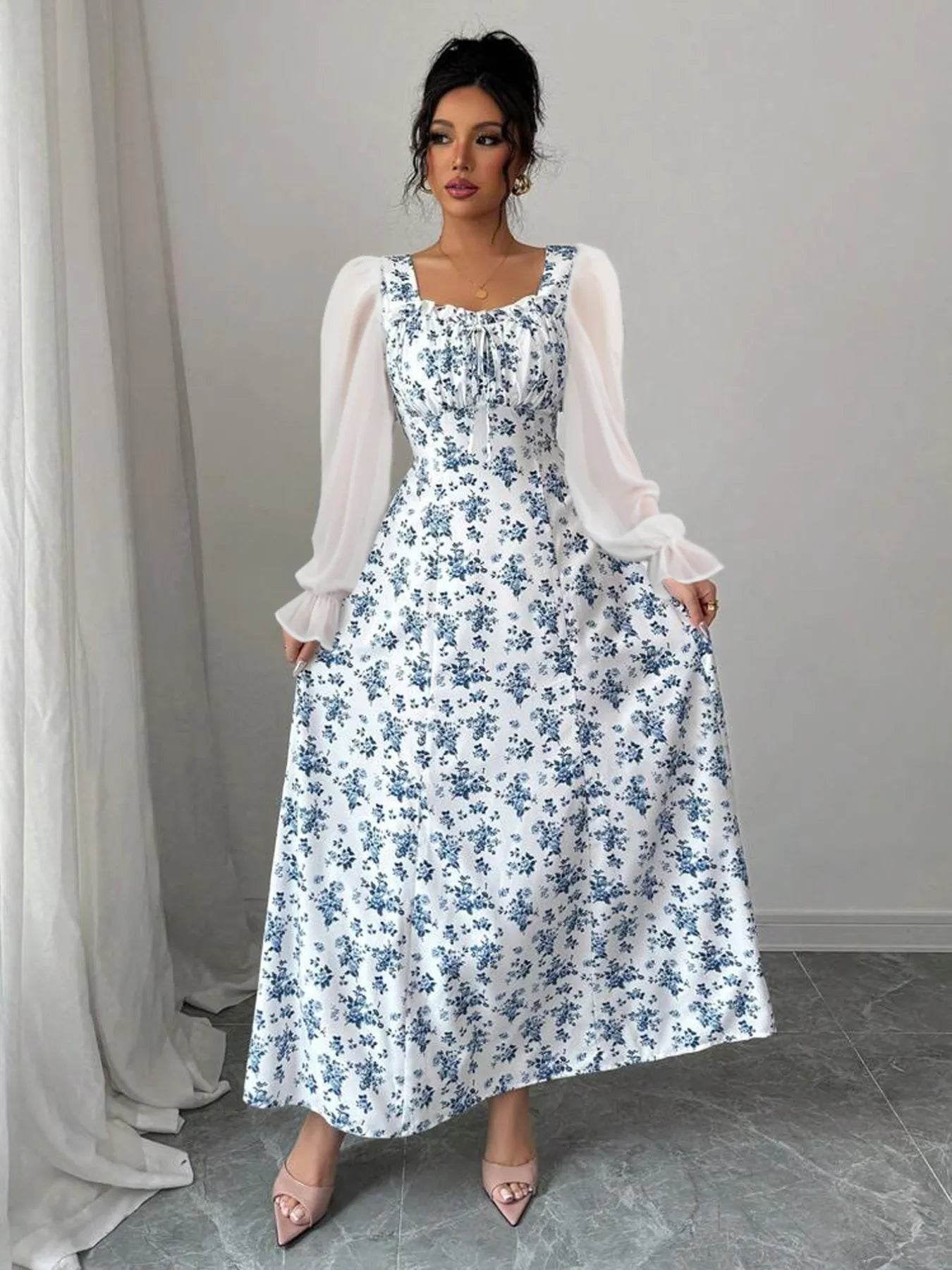 Floral Print Flounce Sleeve Maxi Dress - Ebony's Shopping