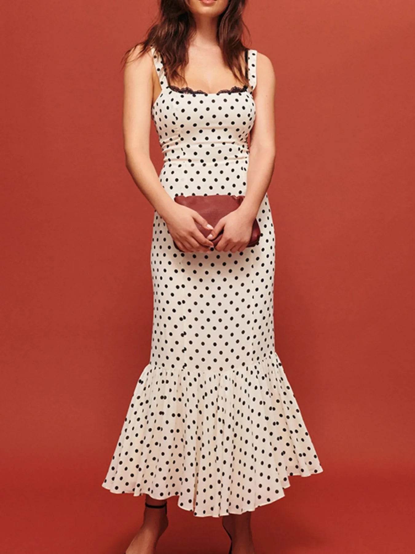 Polka Dot Sweetheart Neckline Maxi Dress - Ebony's Shopping