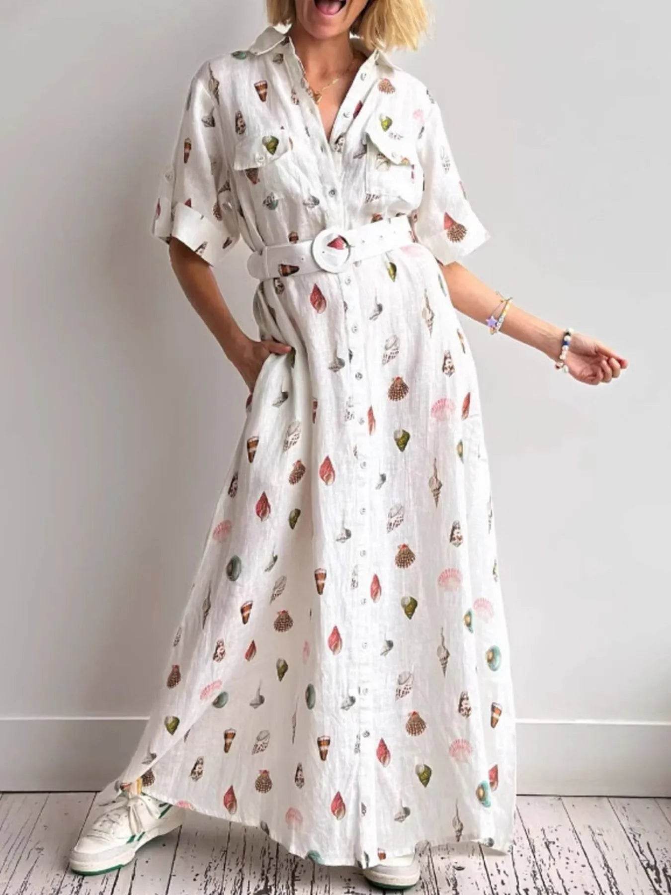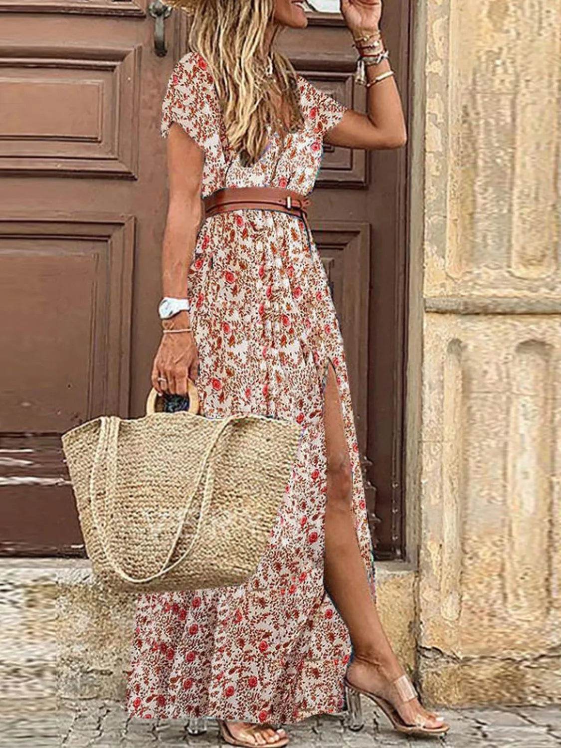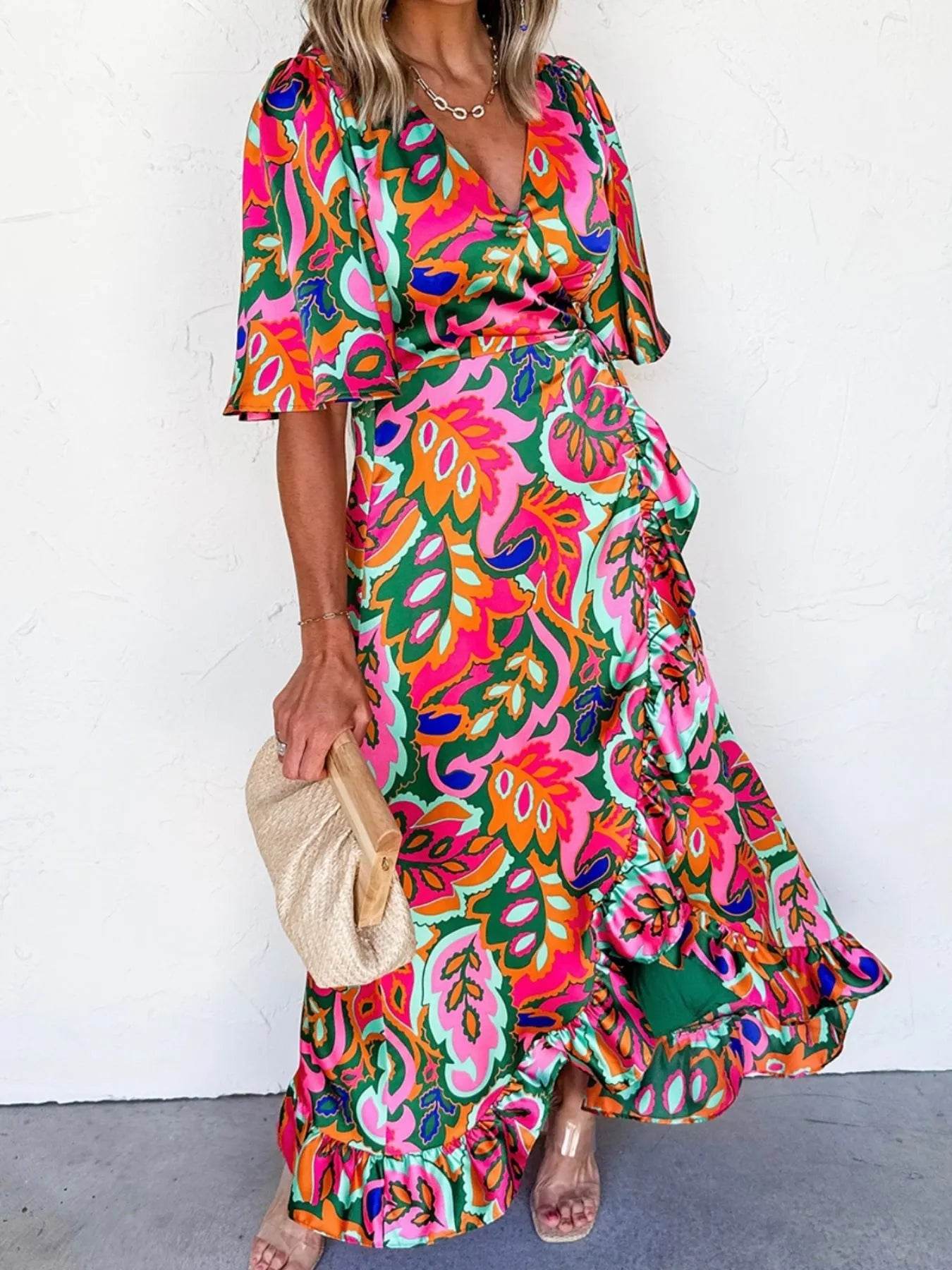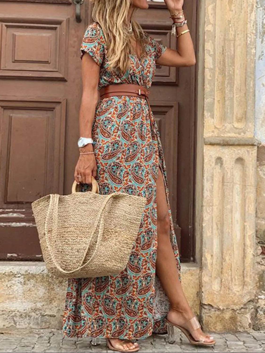The Printed Notched Short Sleeve Tiered Dress is a stylish and versatile choice for any occasion. With its flattering notched neckline and tiered design, this dress offers a chic and feminine look that is perfect for day-to-night wear.