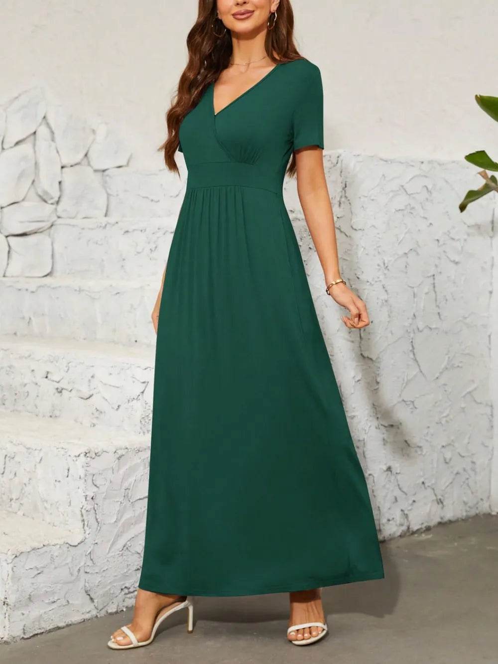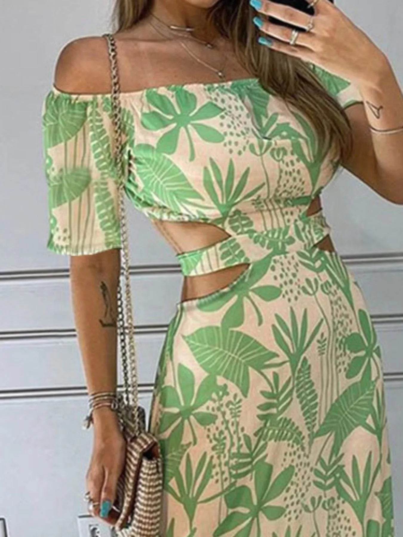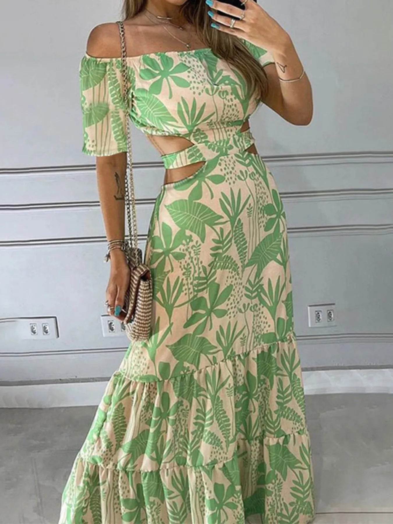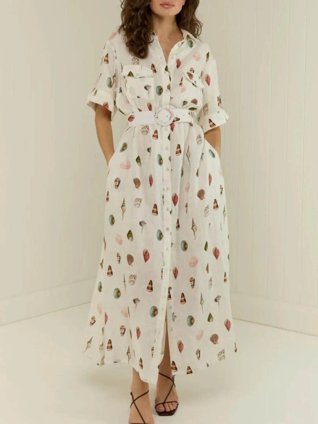 The Printed Notched Short Sleeve Tiered Dress is a stylish and versatile choice for any occasion. With its flattering notched neckline and tiered design, this dress offers a chic and feminine look that is perfect for day-to-night wear.
