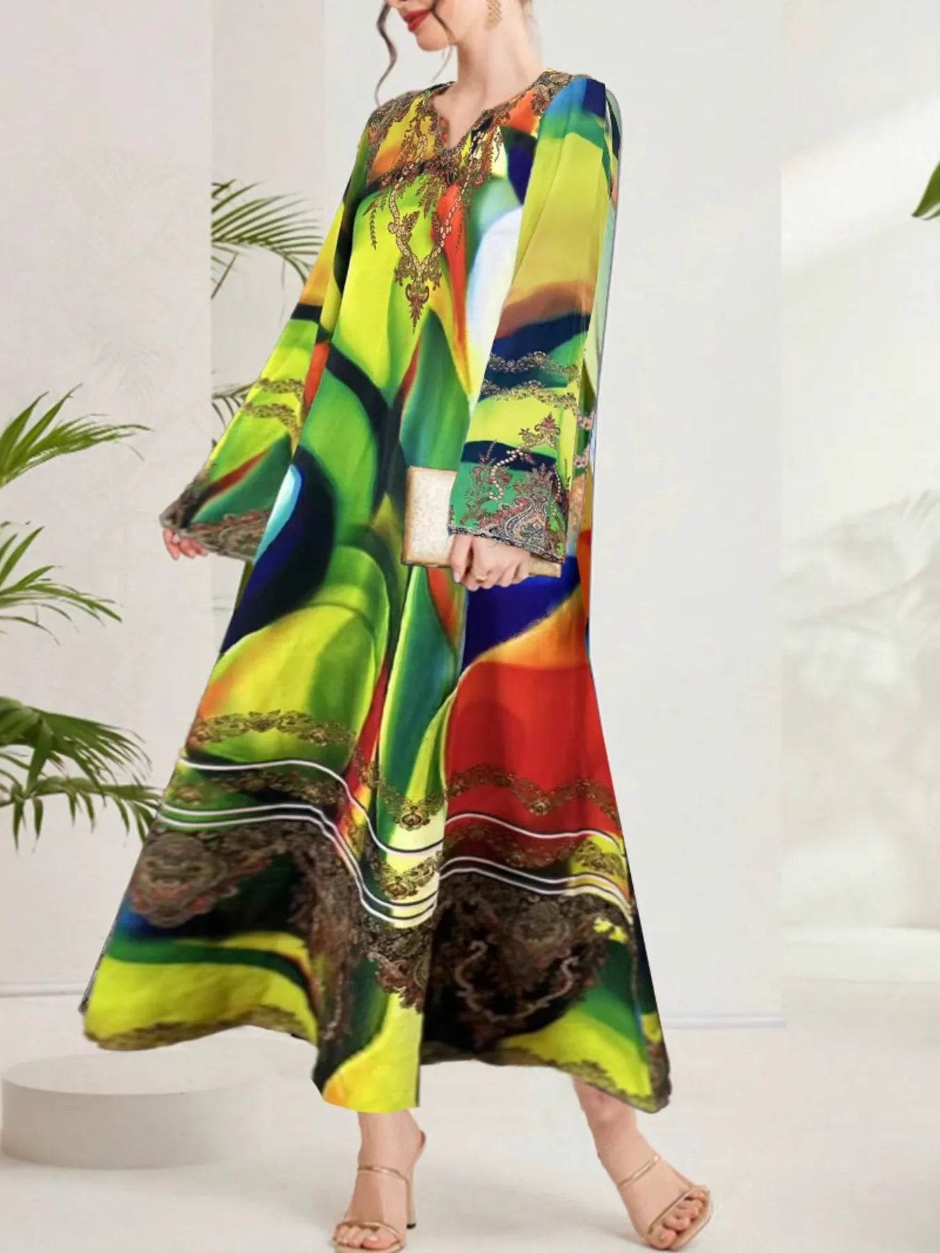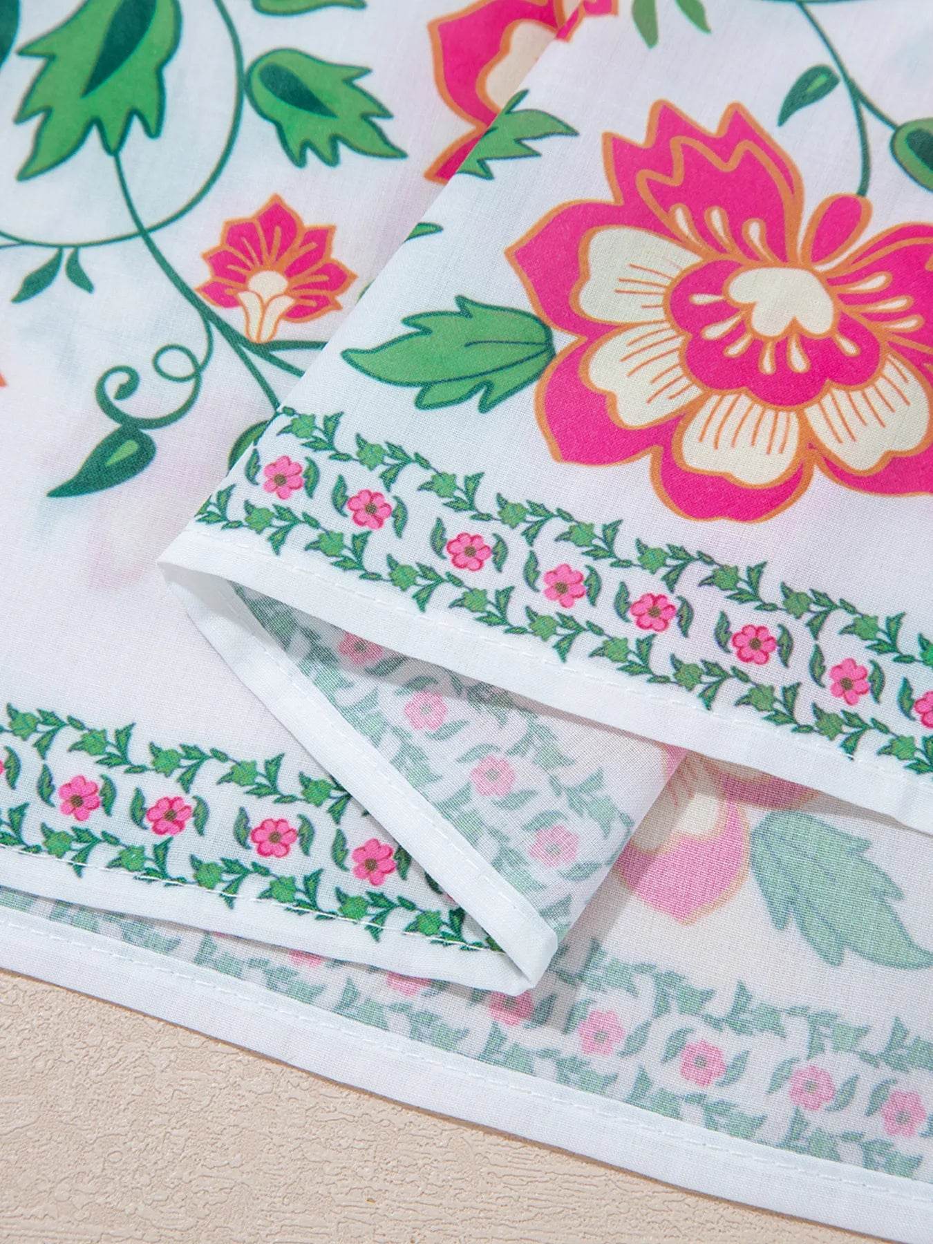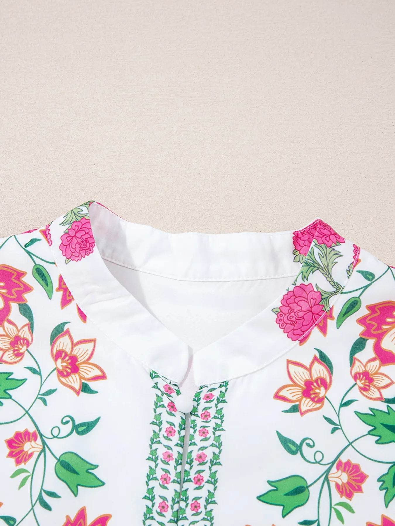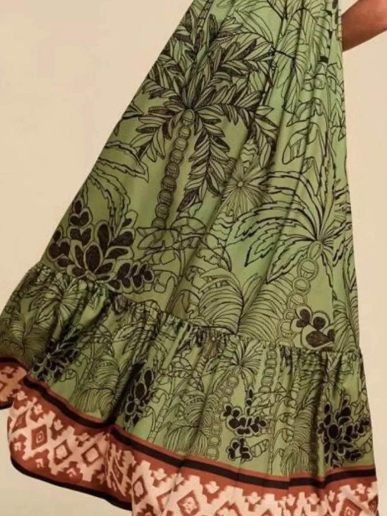 Umgee Full Size Printed Notched Short Sleeve Tiered Dress Plus Size