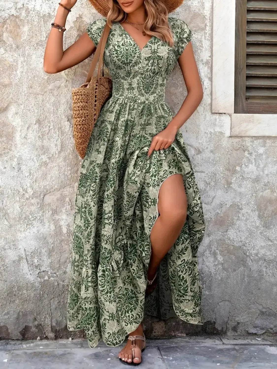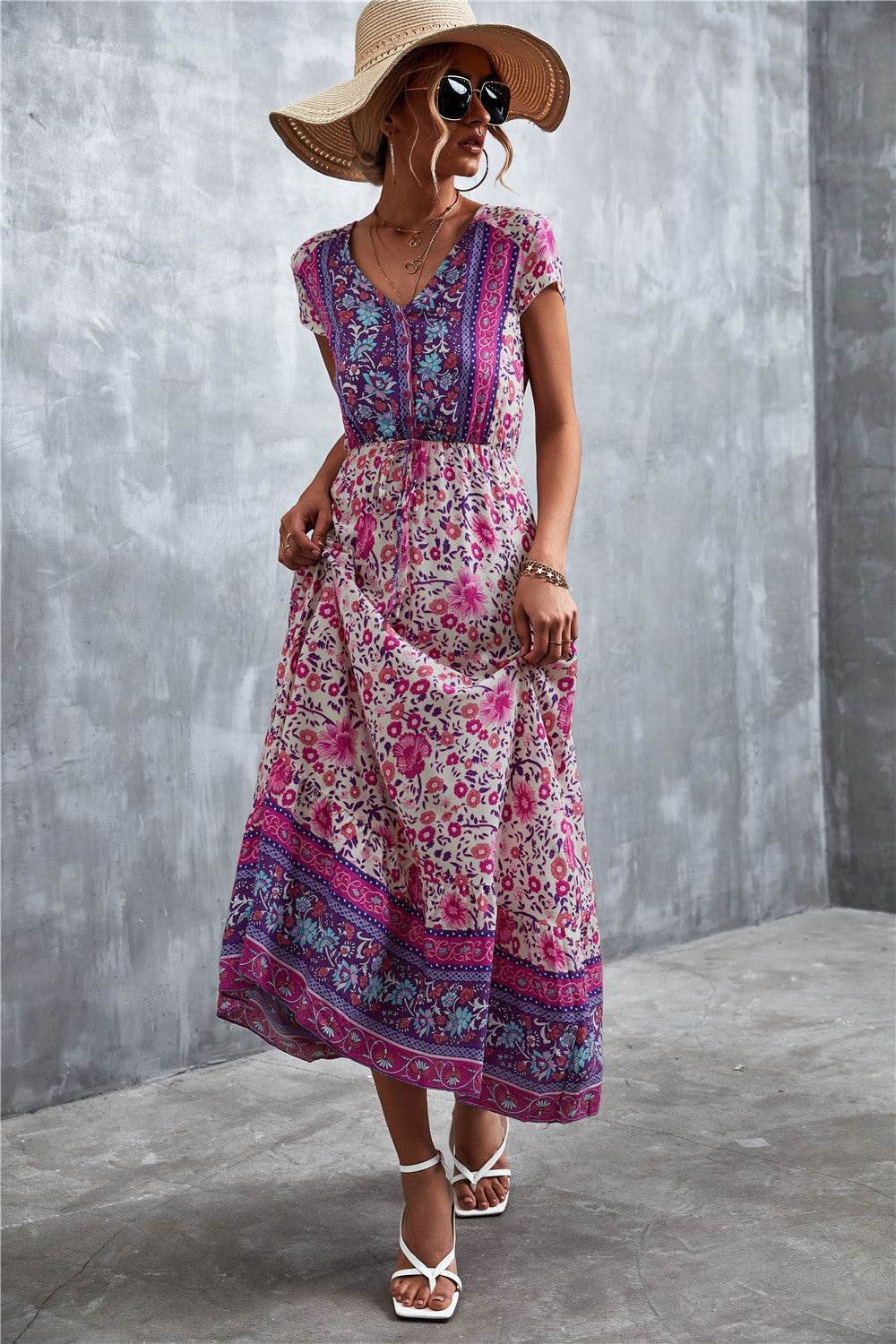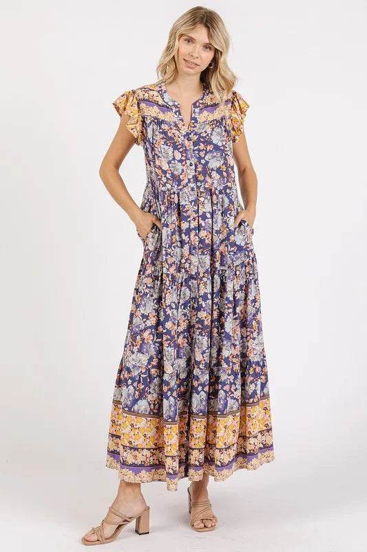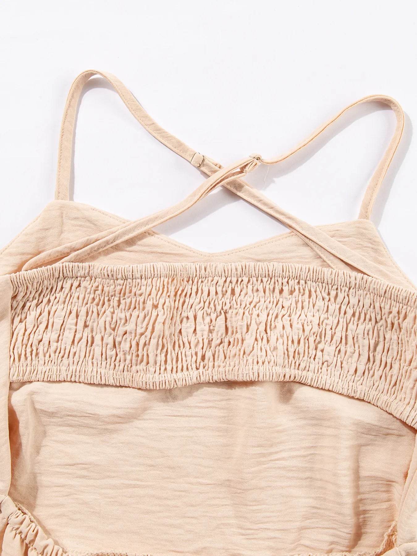 This smocked cami maxi dress is both stylish and functional, featuring convenient pockets for added practicality. The smocked bodice provides a flattering and comfortable fit for all body types. Perfect for a casual day out or a relaxing evening, this dress offers a versatile and effortless style. The cami straps add a touch of femininity, while the maxi length provides a flowy and elegant silhouette. With the added convenience of pockets, you can easily carry your essentials while looking chic and put-together. Elevate your wardrobe with this must-have piece that combines fashion with functionality.