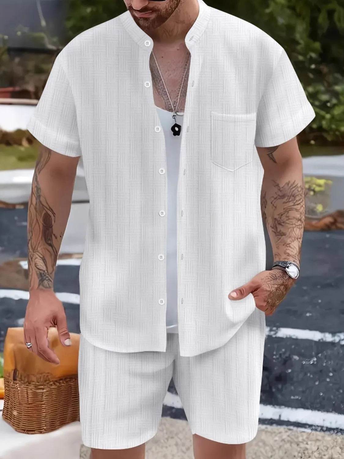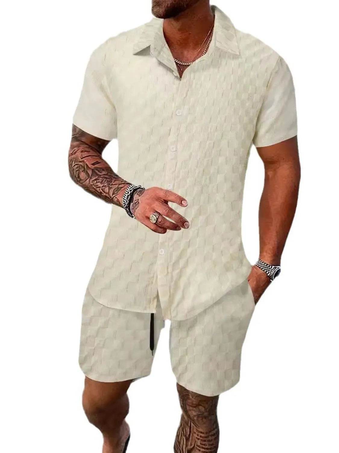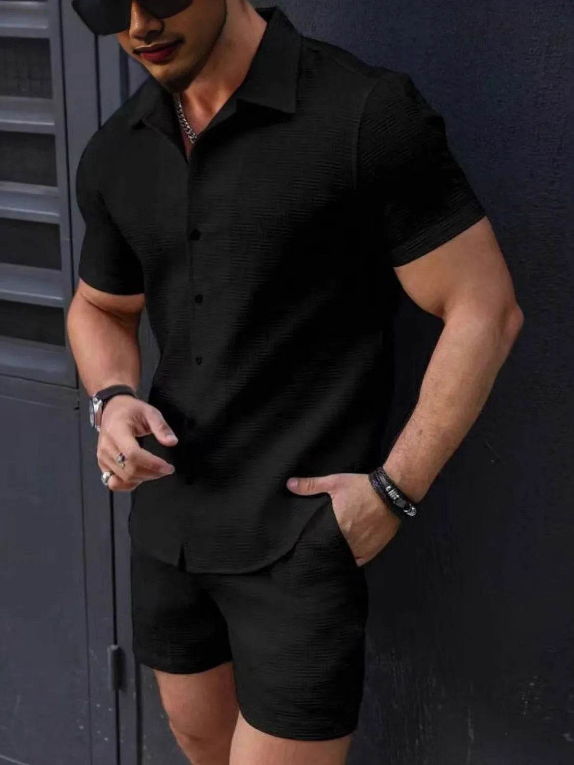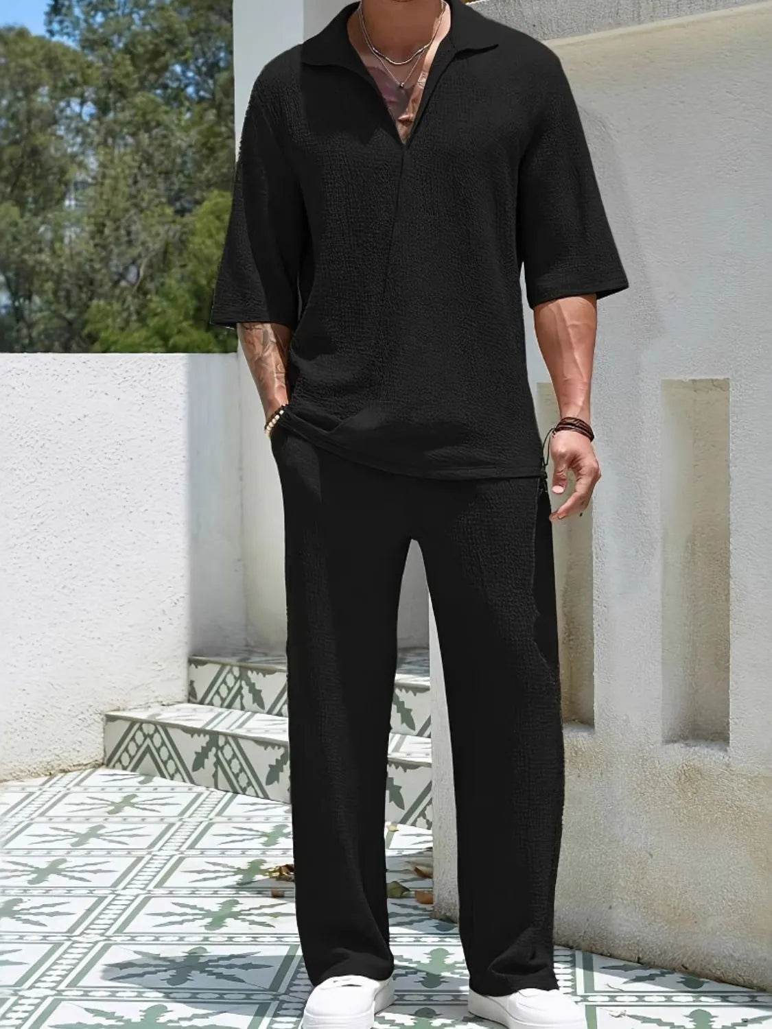 Men's 2-Piece Outfit Set. Featuring a matching top and pants or shorts, this set offers a cohesive look that takes the hassle out of styling. Made from lightweight, breathable fabric, it’s perfect for casual, everyday wear."