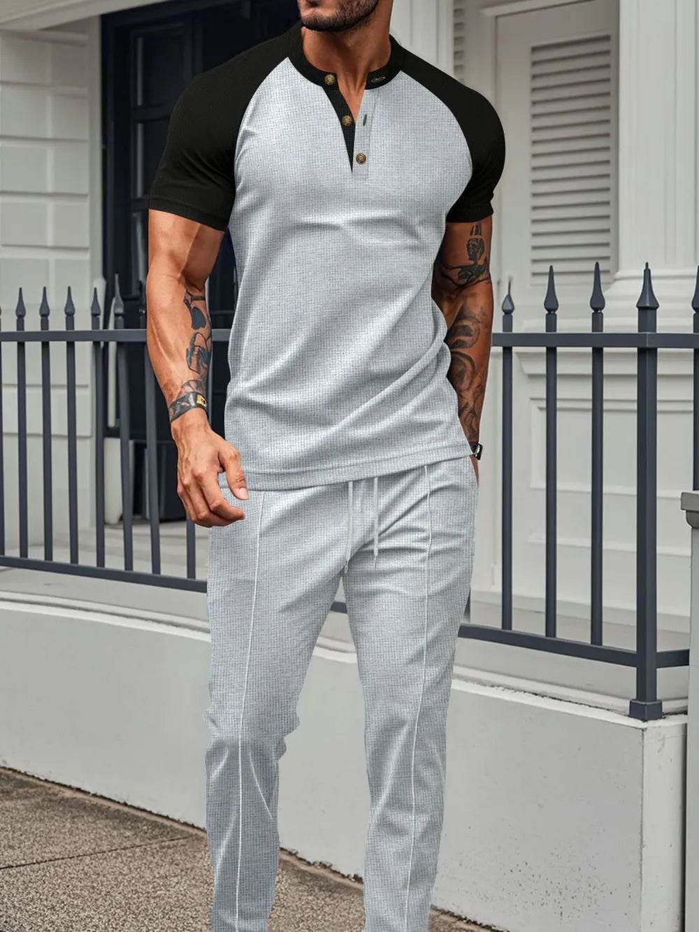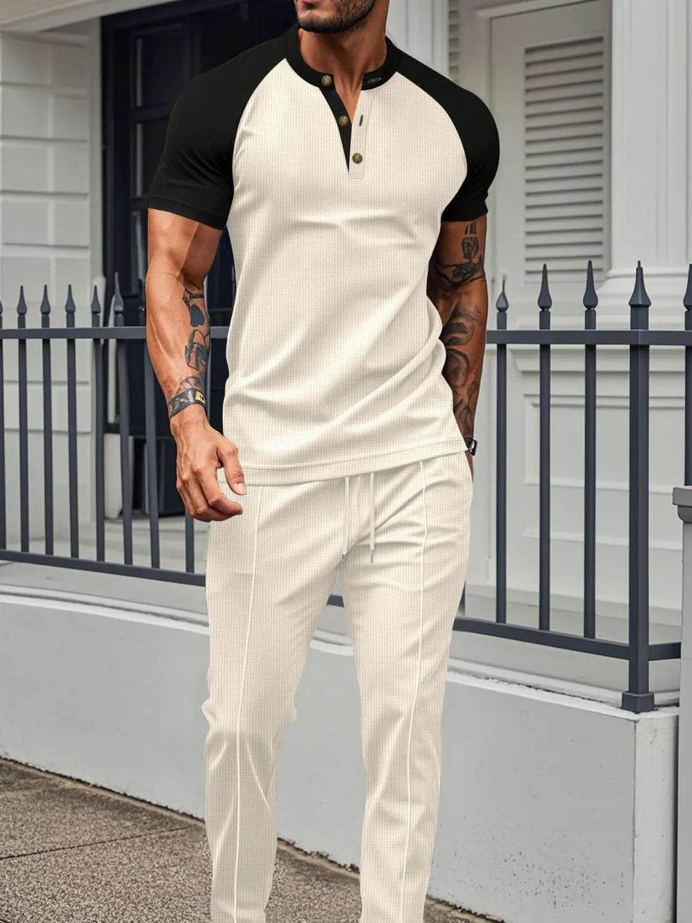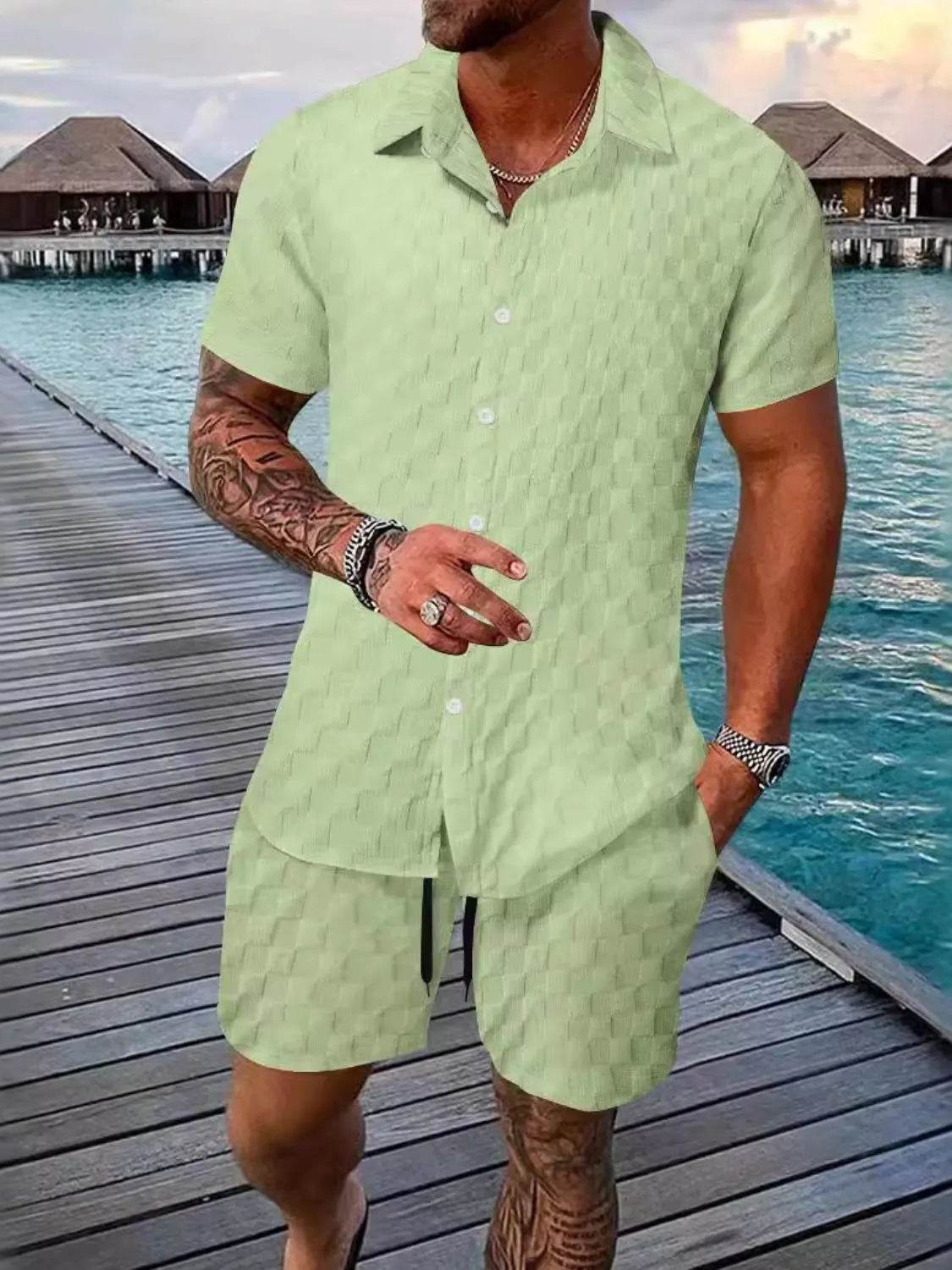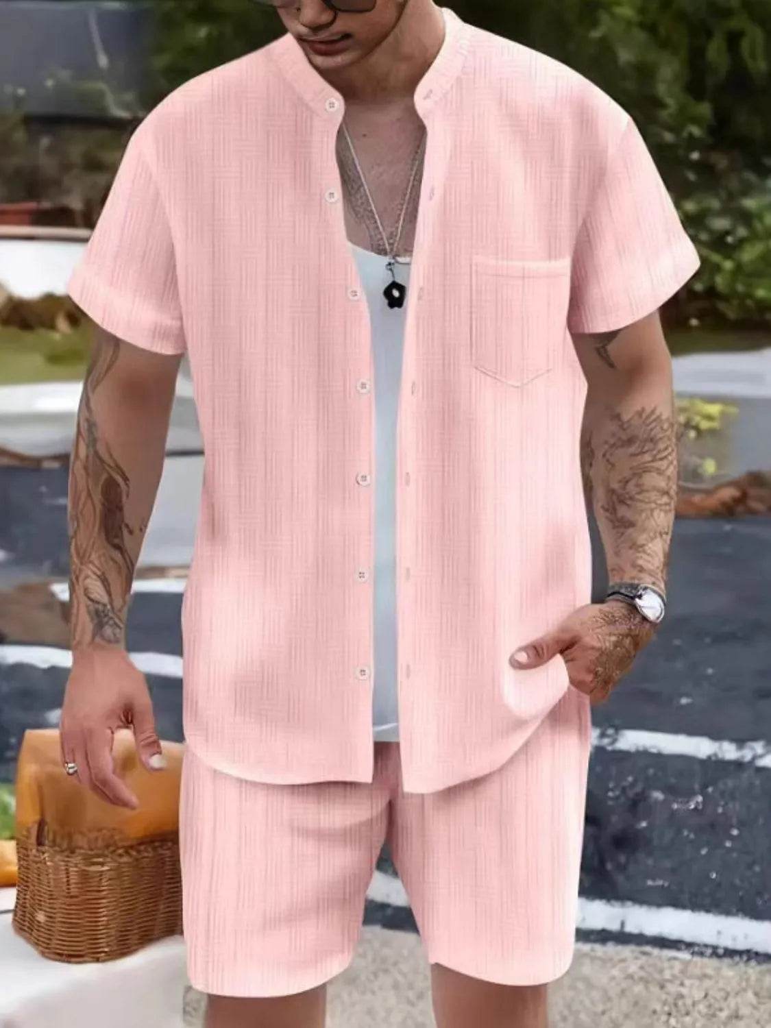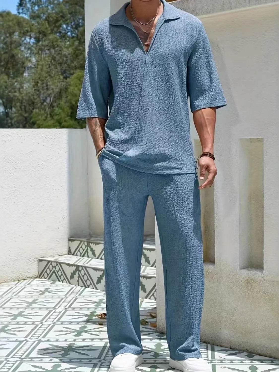 Men's 2-Piece Outfit Set. Featuring a matching top and pants or shorts, this set offers a cohesive look that takes the hassle out of styling. Made from lightweight, breathable fabric, it’s perfect for casual, everyday wear."