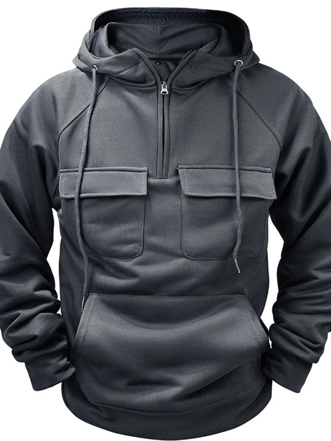 Men's Full Size Drawstring Long Sleeve Hoodie Plus Size - Ebony's Shopping