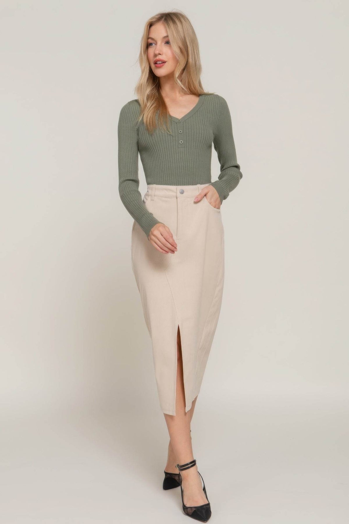 Short Sleeve Ribbed Top & Midi Skirt Se