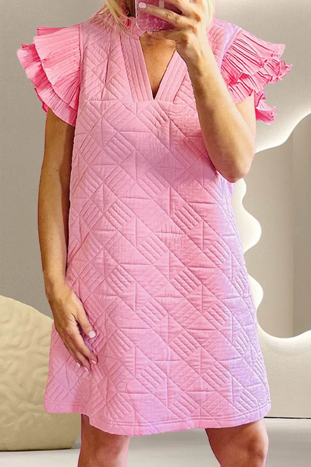 Ruffled Notched Cap Sleeve Mini Dress - Ebony's Shopping