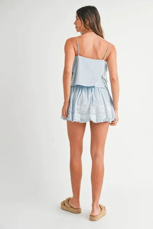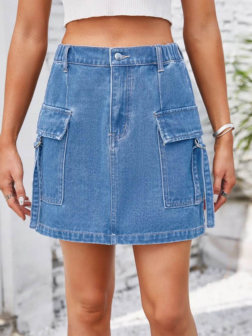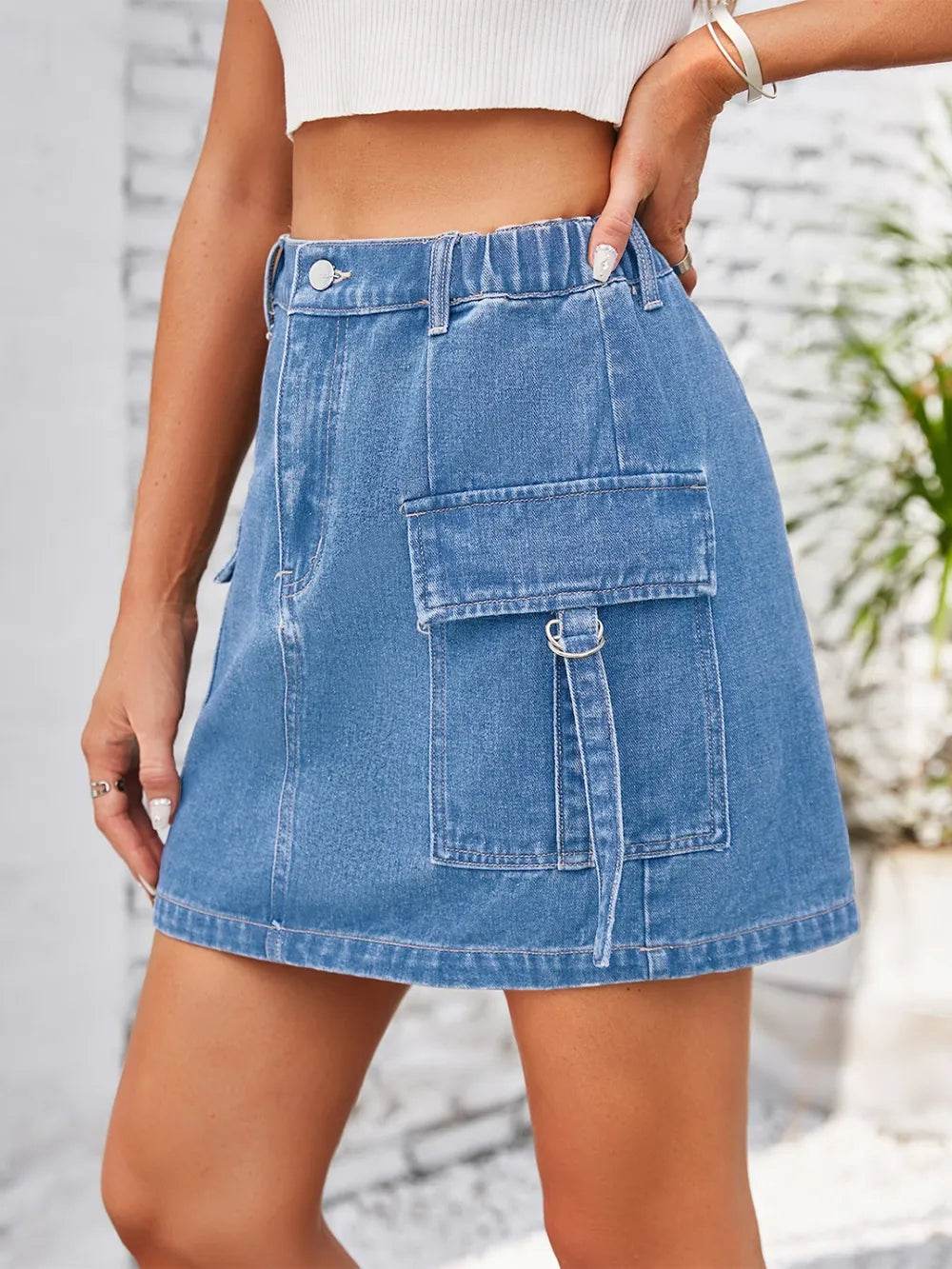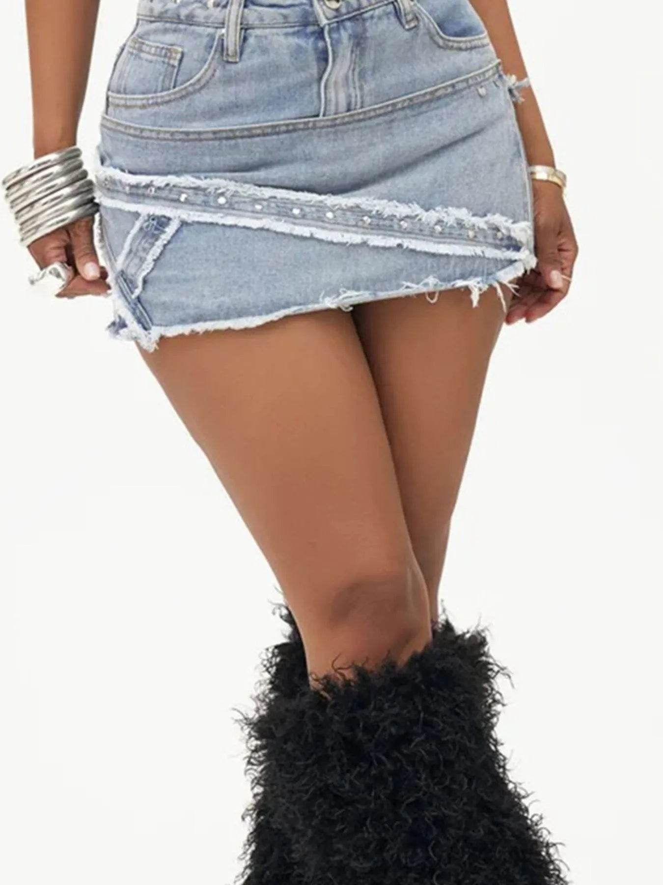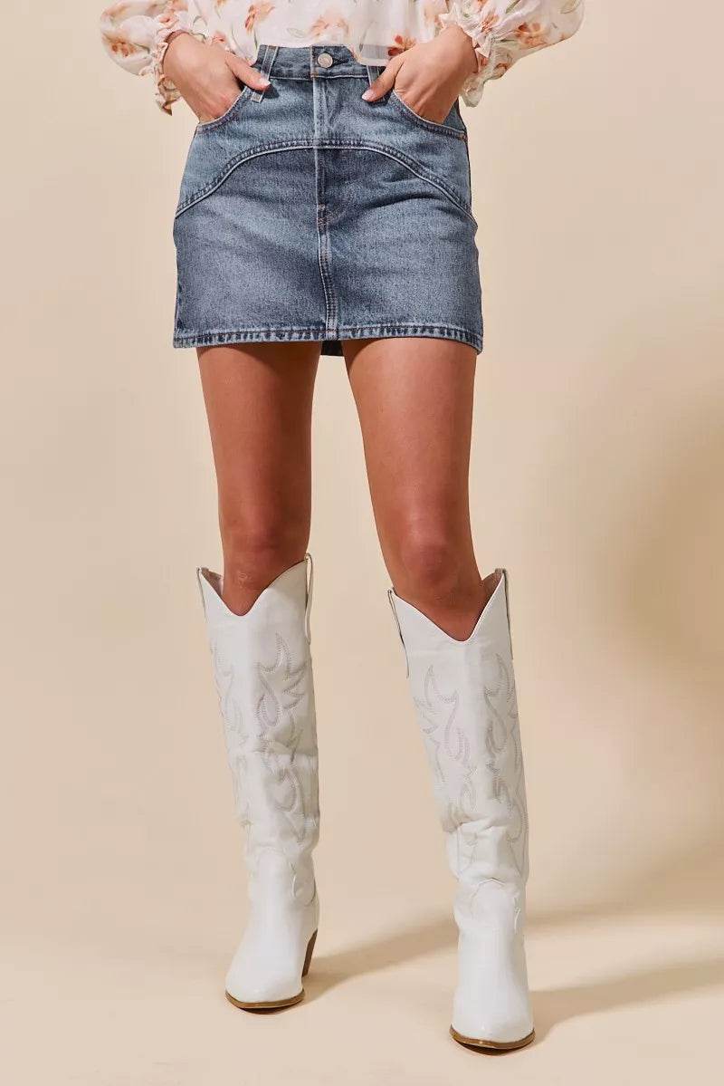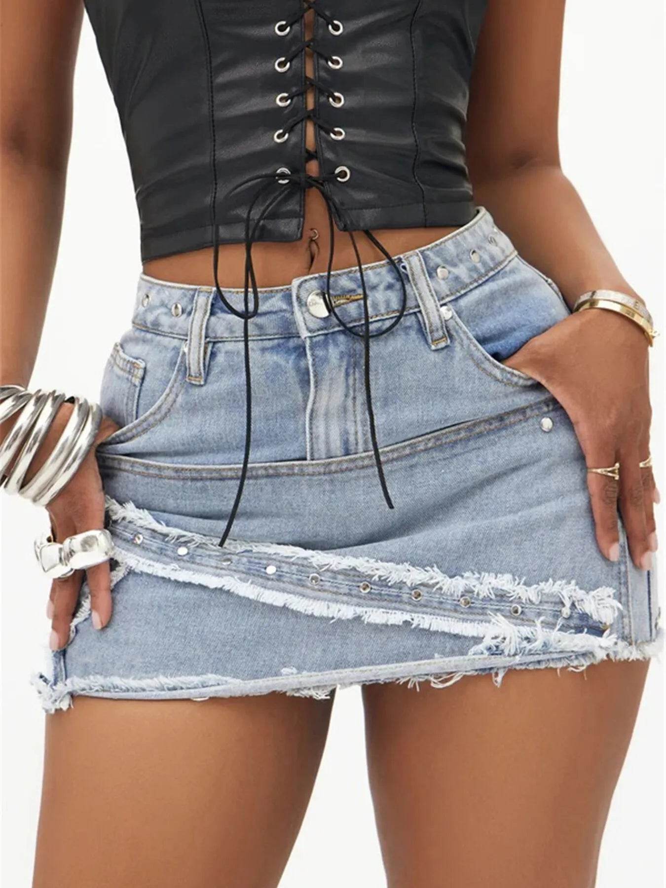 The perfect addition to your summer wardrobe. Crafted with the utmost care and attention to detail, this skirt combines comfort, style, and versatility. The high-rise design of this skirt is not only flattering but also offers a secure fit, making it ideal for all-day wear. The denim fabric is soft yet durable, ensuring long-lasting comfort and allowing you to move freely with ease. Minimal distressing adds a touch of edginess to the general look, making this skirt a standout piece in any outfit. The distressed areas are strategically placed, giving a lived-in feel without compromising the skirt's structural integrity. Featuring a classic mini length, this skirt allows you to showcase your legs and embrace the warmer weather. Pair it with a casual t-shirt and sneakers for a relaxed daytime look, or dress it up with a blouse and heels for a night out on the town.