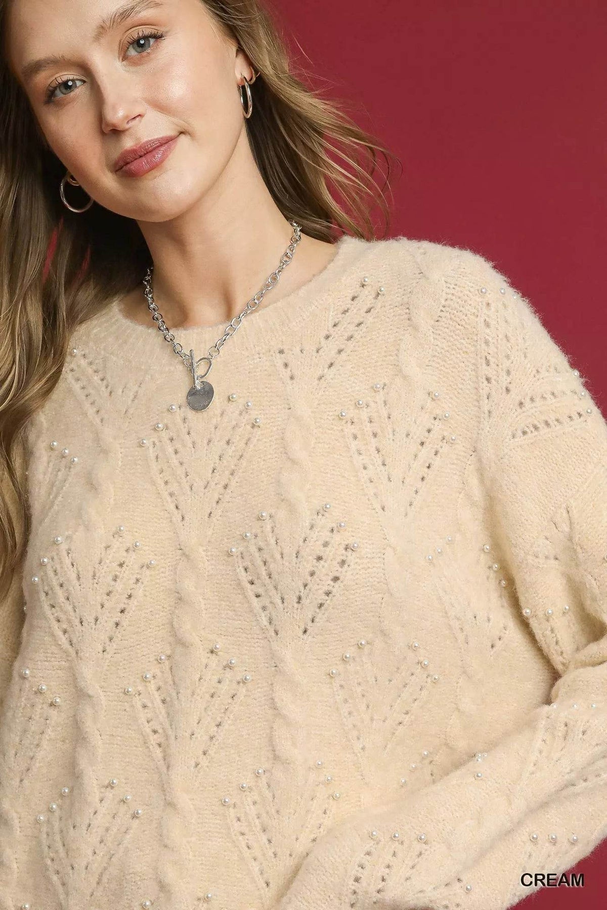 The Pearl-Embellished Long Sleeve Sweater is a sophisticated and elegant knitwear piece that adds a touch of luxury to your outfit. Adorned with delicate pearl embellishments, this sweater exudes a timeless and chic aesthetic that is perfect for an elevated look. The long sleeves provide warmth and coverage, making it a versatile choice for cooler weather. Pair this sweater with tailored pants or a skirt for a polished and refined ensemble, suitable for both work and special occasions. The combination of cozy knit fabric and elegant pearl details makes this sweater a standout and stylish addition to your wardrobe.