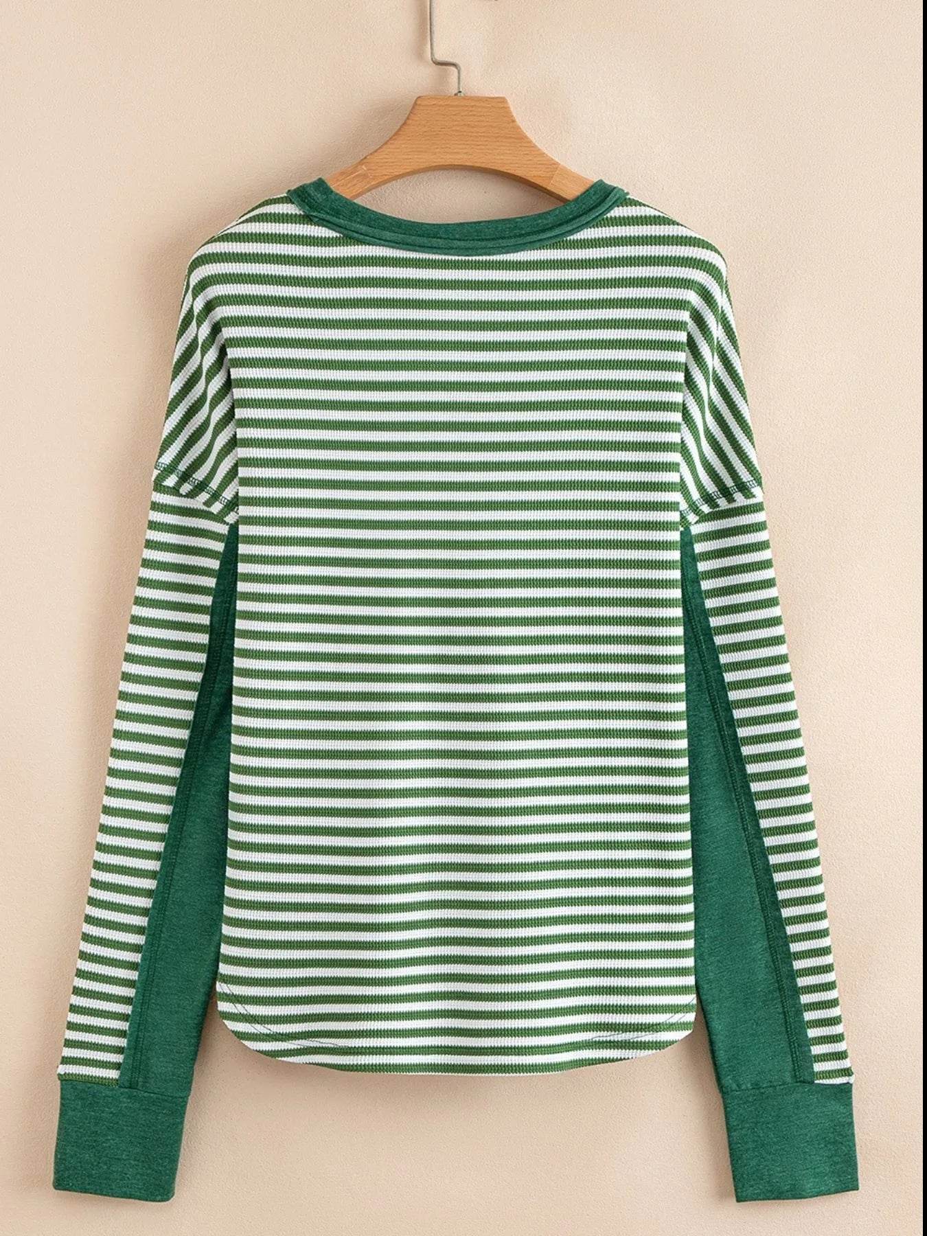This ribbed long sleeve half button top combines texture with a touch of sophistication. The ribbed fabric adds visual interest and a flattering fit. The half button detailing adds a stylish and versatile element to the classic long-sleeve design. Perfect for creating a cozy yet chic look for any occasion.