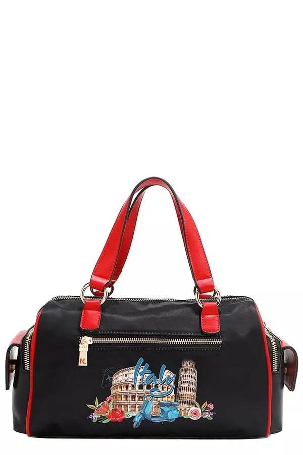 Step into a world of timeless elegance and Italian charm with the Martha Travels Italy handbag. Whether you’re strolling through cobblestone streets or making an entrance at a chic soirée, the sparkling embellished design is your perfect companion for day-to-night glamour. With multiple pockets on each side and the back, this handbag offers ample storage space to keep your essentials organized without compromising on style.